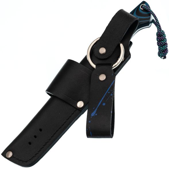 Ножны выполнены из натуральной кожи, что гарантирует их долговечность и эстетическую привлекательность. Они оснащены свободным подвесом для максимальной подвижности, жестким подвесом для надежной фиксации и горизонтальным подвесом, который позволяет удобно носить нож на поясе. Такой подход к деталям делает нож универсальным и практичным выбором для самых разных ситуаций.