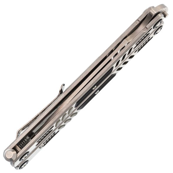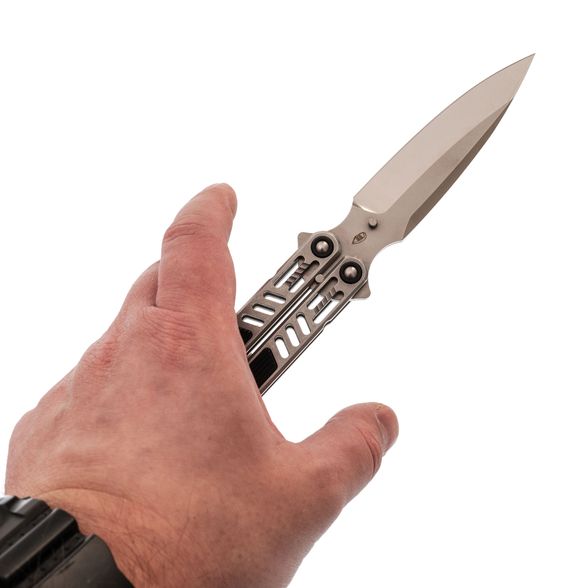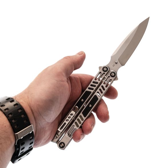 Нож-бабочка Reptilian Стикс-02 - это стильный и функциональный инструмент, который поразит своей эстетикой и практичностью. Клинок формы Spear-Point с обработкой stonewash из прочной стали D2 обеспечивает агрессивный рез, долгое сохранение заточки и хорошую проникающую способностью. Его длина составляет 89 мм, толщина обуха - 3,5 мм.