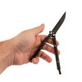 НОЖ БАБОЧКА СЕКИРО-02 D2, STEELCLAW станет вашим помощником в походе, на рыбалке или на дружеском пикнике. Благодаря продуманной геометрии нож обладает плавным и хорошо контролируемым резом. В качестве материала для клинка здесь используется инструментальная сталь. Сталь предназначена для создания режущих инструментов, которые используются для обработки металла и твердого пластика. Благодаря своим высоким рабочим характеристикам получила популярность среди ножеделов. Обладает высокой устойчивостью к коррозии и оптимальным соотношением "вязкость-упругость". Для удобного ношения в городских условиях нож оснащен надежной стальной клипсой.