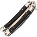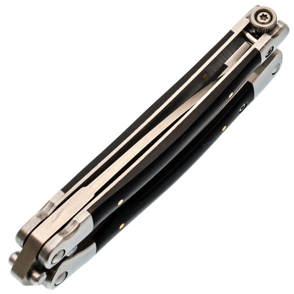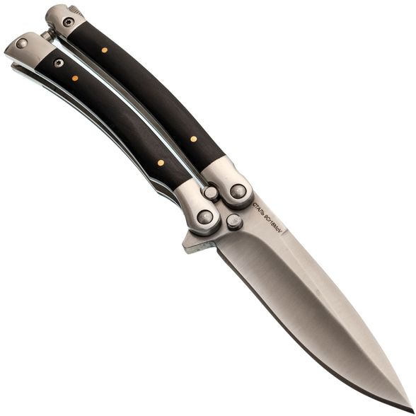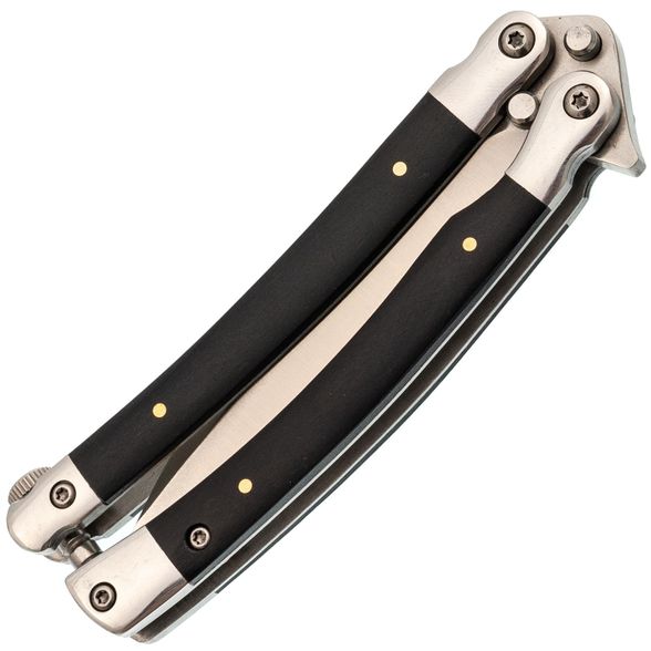 Эргономичная форма рукояти - еще одно преимущество этого балисонга. Изогнутая форма рукояти помогает комфортно держать нож в руках, а специальные замки, фиксирующие обе части рукояти в открытом и закрытом положении, добавляют безопасности при эксплуатации. Такая конструкция делает балисонг прочным и надежным инструментом, который не подведет в нужный момент.