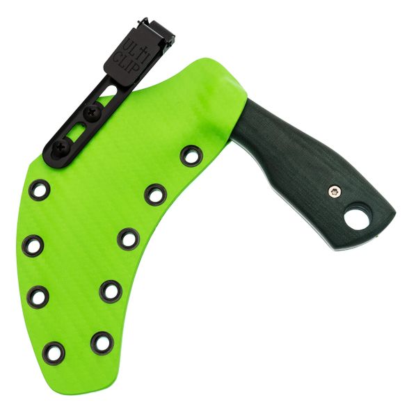 В комплекте идут ножны из ударопрочного Kydex. Они плотно обхватывают нож, исключая случайное выпадение. Для крепления используется система Ulti-Clip - это не просто клипса, а универсальный адаптер. Ее можно закрепить на ремне, на кармане джинсов, на лямке рюкзака или даже на плотном поясе сумки.