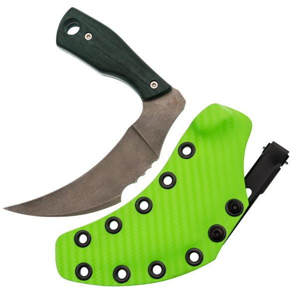 Грим в версии с микартой - это тот случай, когда хай-тек встречается с природой. Микарта добавляет тепла и уникальности: каждый рисунок неповторим. А форма ножа с отсылкой к образу Жнеца превращает его в философский предмет. Но за внешней метафоричностью стоит полноценный рабочий инструмент, который можно использовать каждый день или просто носить с собой как талисман с характером.