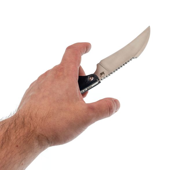 Клинок с загнутым вниз остриём, напоминающим клюв, идеально подходит для вытягивающих и точных резов. Такой профиль популярен в задачах, где важна управляемость реза и минимальное усилие: вскрытие упаковки, работа с верёвками, чистовой рез. Высокие прямые спуски усиливают резущие свойства ножа и позволяют с лёгкостью справляться даже с плотными материалами.