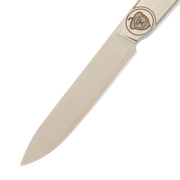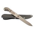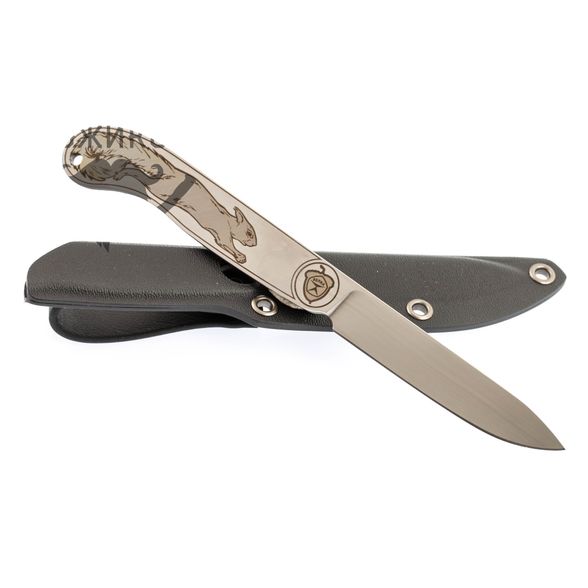 Нож Белка Fixed (Belka) - это универсальный городской нож с фиксированным клинком, который занимает немного места и справится с различными повседневными задачами. Нож Белка Фикс Бруталика выполнен из стали AUS-8 с хорошими антикоррозийными свойствами и твердостью 57-59 HRC. Данный сплав лучше всего подходит для динамических нагрузок, поэтому он является оптимальным для городского EDC-клинка. Лезвие формы Drop point имеет лаконичный дизайн и прямые спуски от обуха. Острый наконечник хорошо прокалывает и пробиваниет разные материалы при небольшом усилии. Рукоять является продолжением лезвия, она украшена рисунком и логотипом компании. Нож Belka Fixed Brutalica дополнен прочными и легкими ножнами, которые можно носить на ремне или на шее при помощи специального шнура.НОЖ БЕЛКА FIXED (BELKA), СТАЛЬ AUS-8 это интересный вариант, который выполнен по мотивам легендарного складного ножа советского времени. Ребята из компании Бруталика выпустили римейк Белки, который достаточно быстро стал популярен среди ножевого сообщества. Отталкиваясь от успеха складной версии, было принято решение выпустить компактный городской фиксед, который отвечал бы всем требования к EDC ножу для города. И вот долгожданный нож перед вами. Нужно отметить, что эта версия получилась ничуть не хуже, а может даже и лучше, чем складная Белка. Нож совершенно точно понравится ценителям комфортного и хорошо контролируемого реза. Инструментальная сталь AUS-8 отлично подходит для создания компактных фиксированных клинков благодаря оптимальному сочетанию твердости и упругости. Плюс, она достаточно легко затачивается с помощью карманной точилки и небольшого бруска. Для ношения в городских условиях используется чехол из кайдекса с кожаной петлей.
