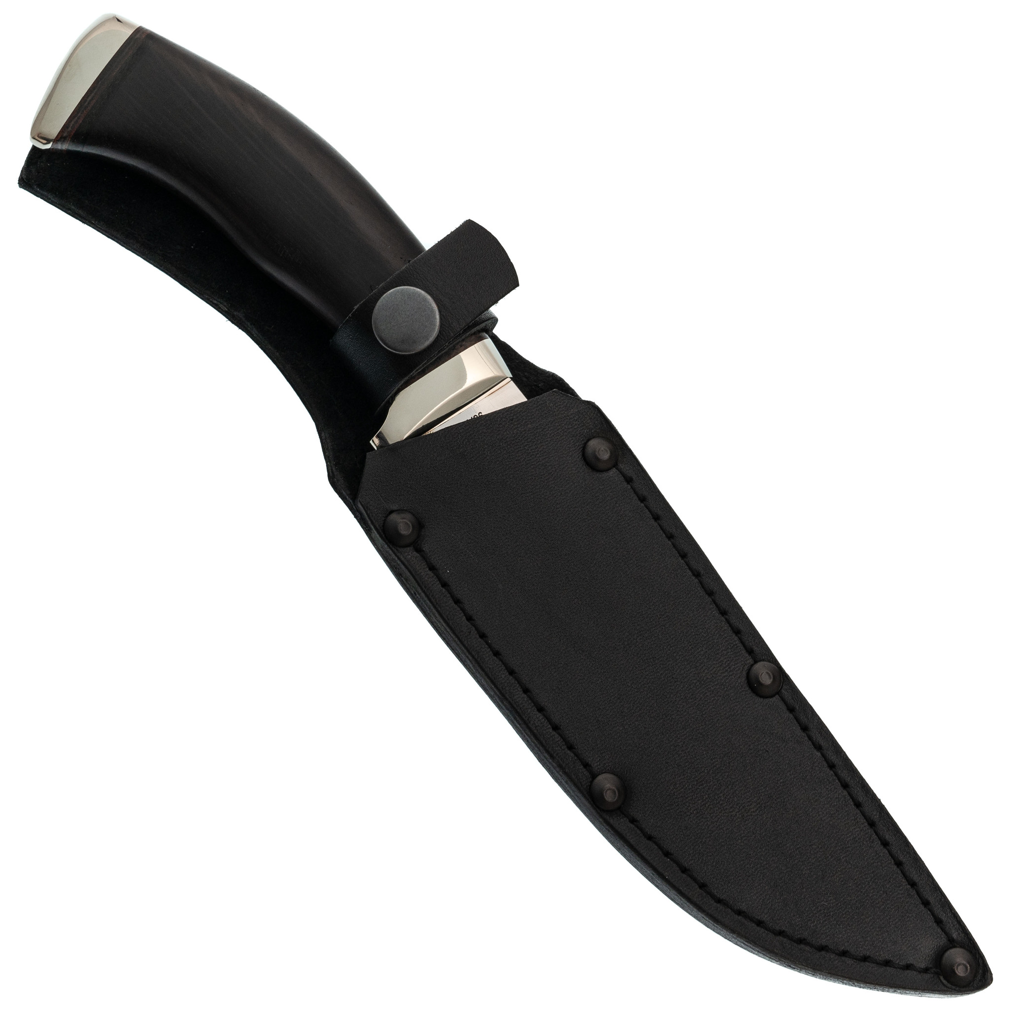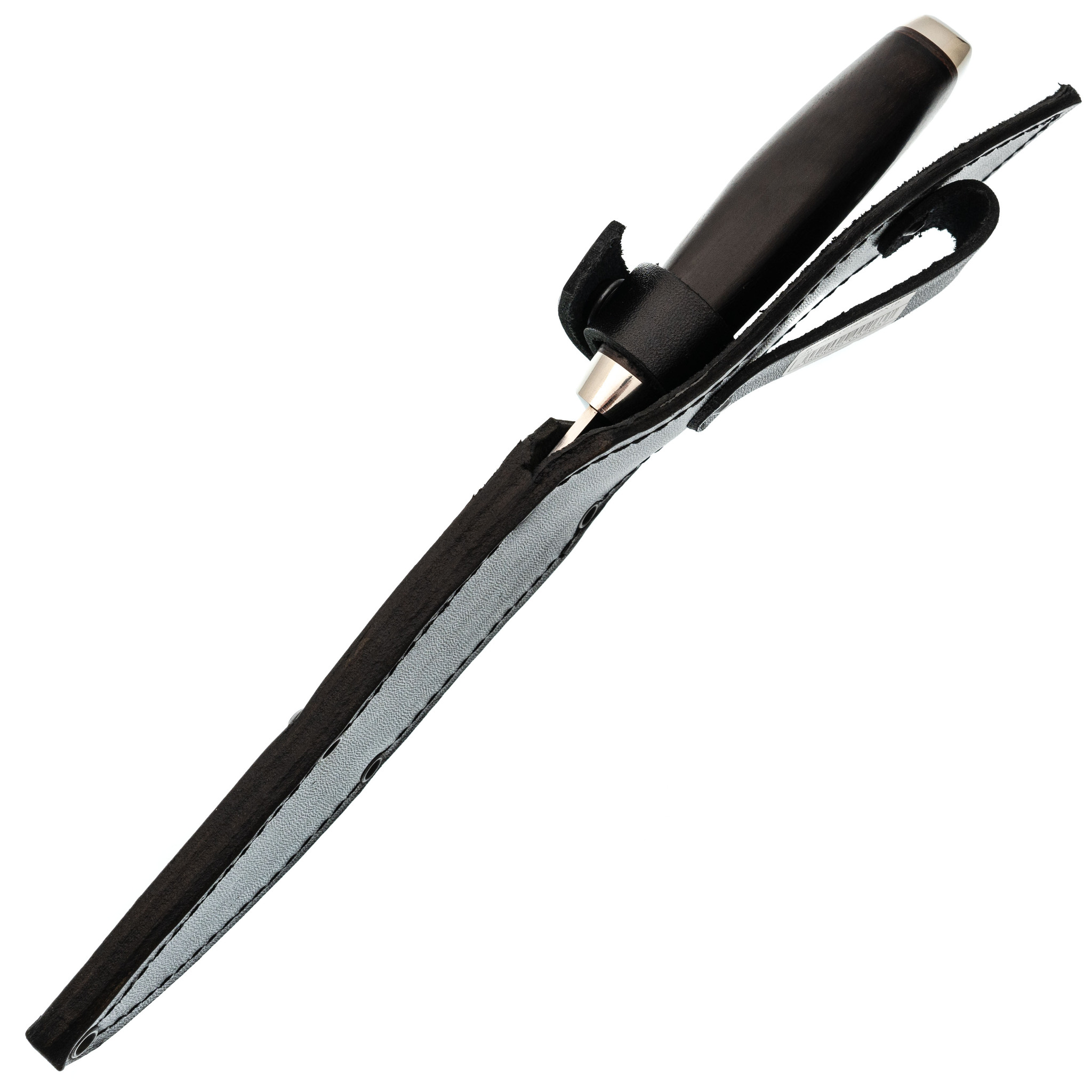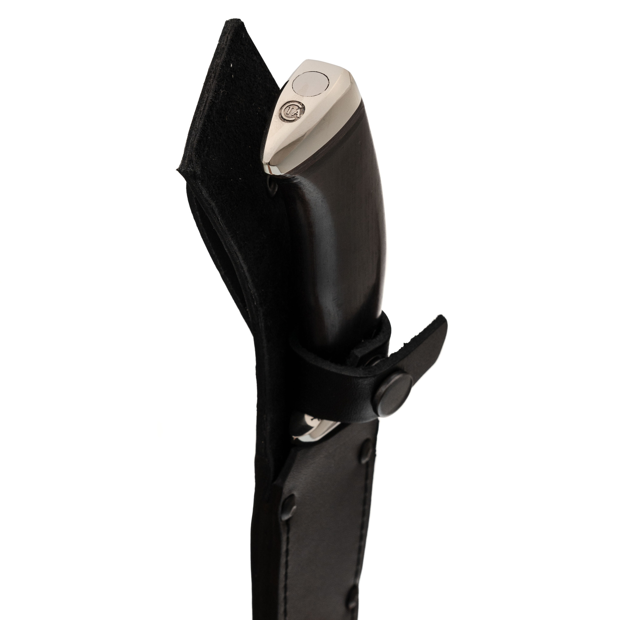 Кожаные ножны идут в комплекте и создают гармоничное завершение образа ножа. Они обеспечивают плотную посадку, защищают клинок от внешнего воздействия и позволяют безопасно носить нож как на поясе, так и в рюкзаке. Прочные швы и классическая форма делают ножны не только функциональными, но и долговечными.