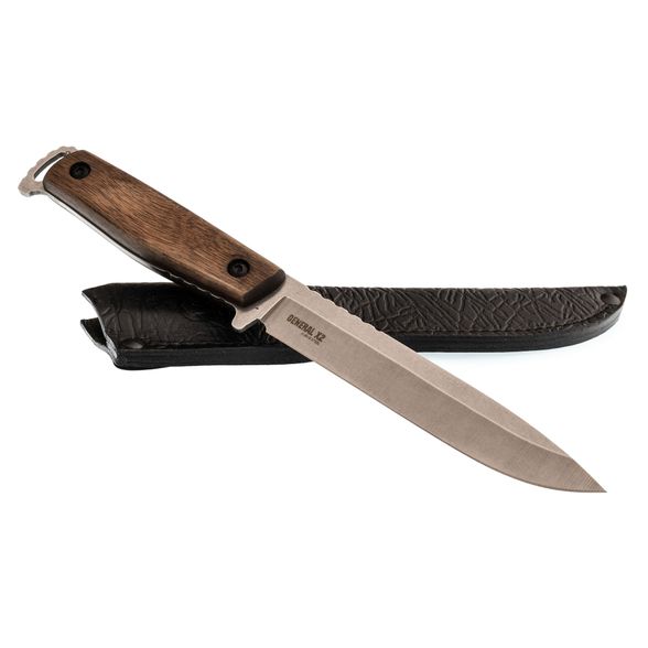Клинок из AUS-8 обладает высокой коррозионной стойкостью благодаря азотной закалке. Заявленные показатели твёрдости составляют 58-59 HRC, что обеспечивает идеальный баланс между ударопрочностью и сохранением остроты. AUS-8 уже давно заслужил репутацию отличной стали для ножей туристического толка. General X2 - идеальный выбор для тех, кто ценит универсальность и надежность. Его клинок обеспечивает отличное сочетание прочности и качества реза благодаря толщине обуха в 3 мм. Этот нож станет незаменимым помощником как в лесу, так и на строительной площадке или в быту. Благодаря своей универсальности он справится с любым списком задач - от рубки дров до приготовления пищи на природе.