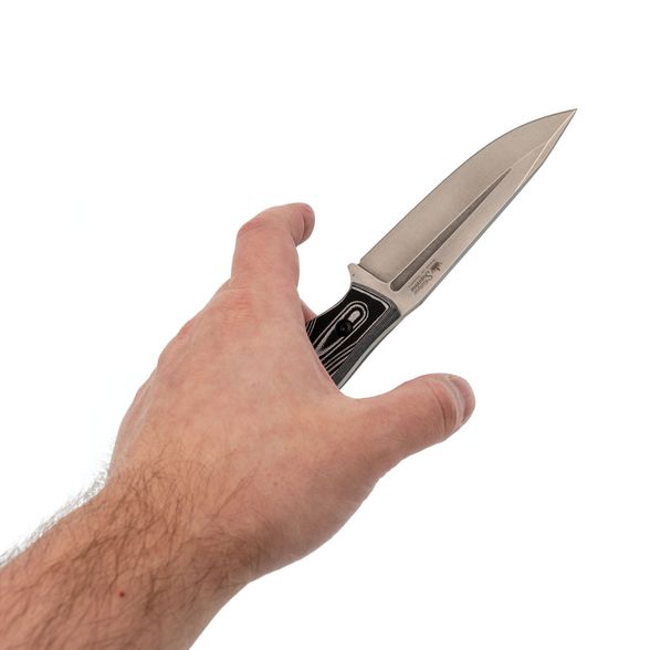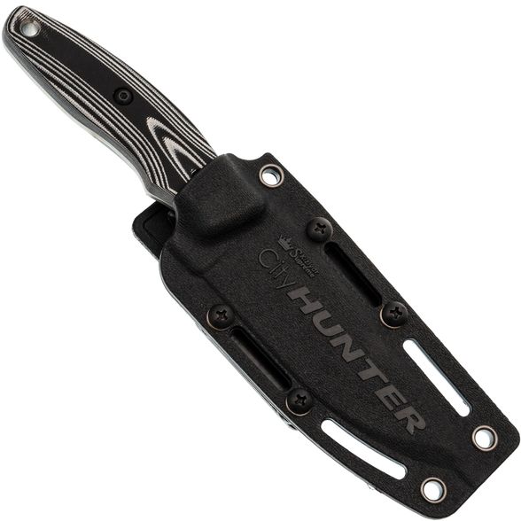 Рукоять изготовлена из прочного и неприхотливого стеклотекстолита G10, обеспечивающего комфортный и уверенный хват в любых условиях. Отличительной чертой серии City является стильное сочетание черного и белого цветов, придающее ножу узнаваемый внешний вид. Полный (Full-Tang) монтаж рукояти гарантирует максимальную прочность и стабильность конструкции, а наличие темлячного отверстия позволяет закрепить темляк или страховочный шнур.