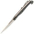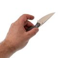 Особого внимания заслуживает рукоять серого цвета - оттенка, крайне редко встречающегося в ножевой индустрии. Этот выбор не только эстетически выделяет модель, но и делает её привлекательной для коллекционеров. Материал G10 гарантирует надежный хват даже в сложных условиях: он устойчив к воздействию влаги, температурным перепадам и механическим повреждениям. Эргономичная форма с выраженным выступом на пятке облегчает быстрое и безопасное извлечение ножа.