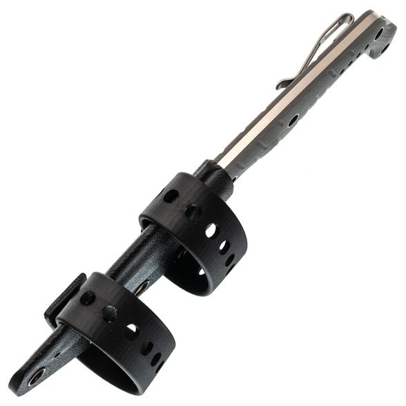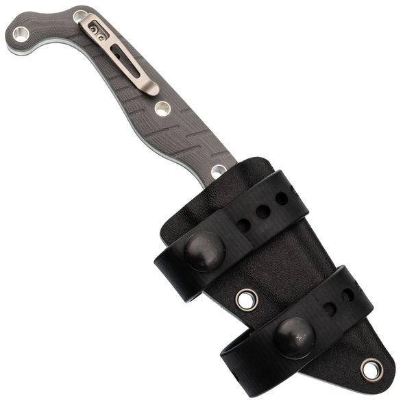 Ножны изготовлены из термопластика Kydex - прочного и устойчивого материала, сохраняющего форму даже при сильных нагрузках. Специальный крюк на ножнах удерживает их в кармане при извлечении ножа. В комплекте также идут две стропы на кнопках для горизонтального крепления на ремень. Это решение позволяет снимать нож без необходимости снимать сам ремень - просто, быстро и удобно.