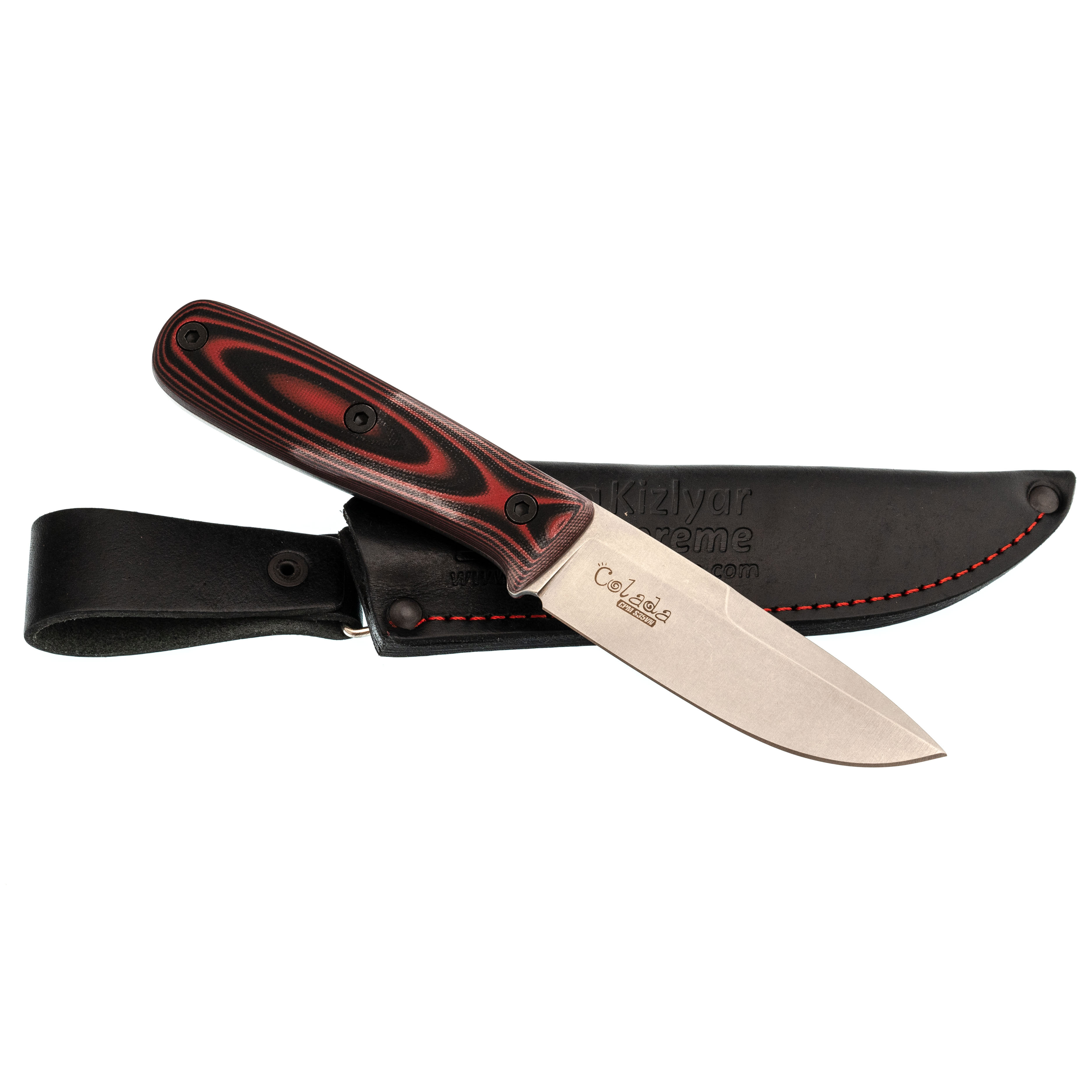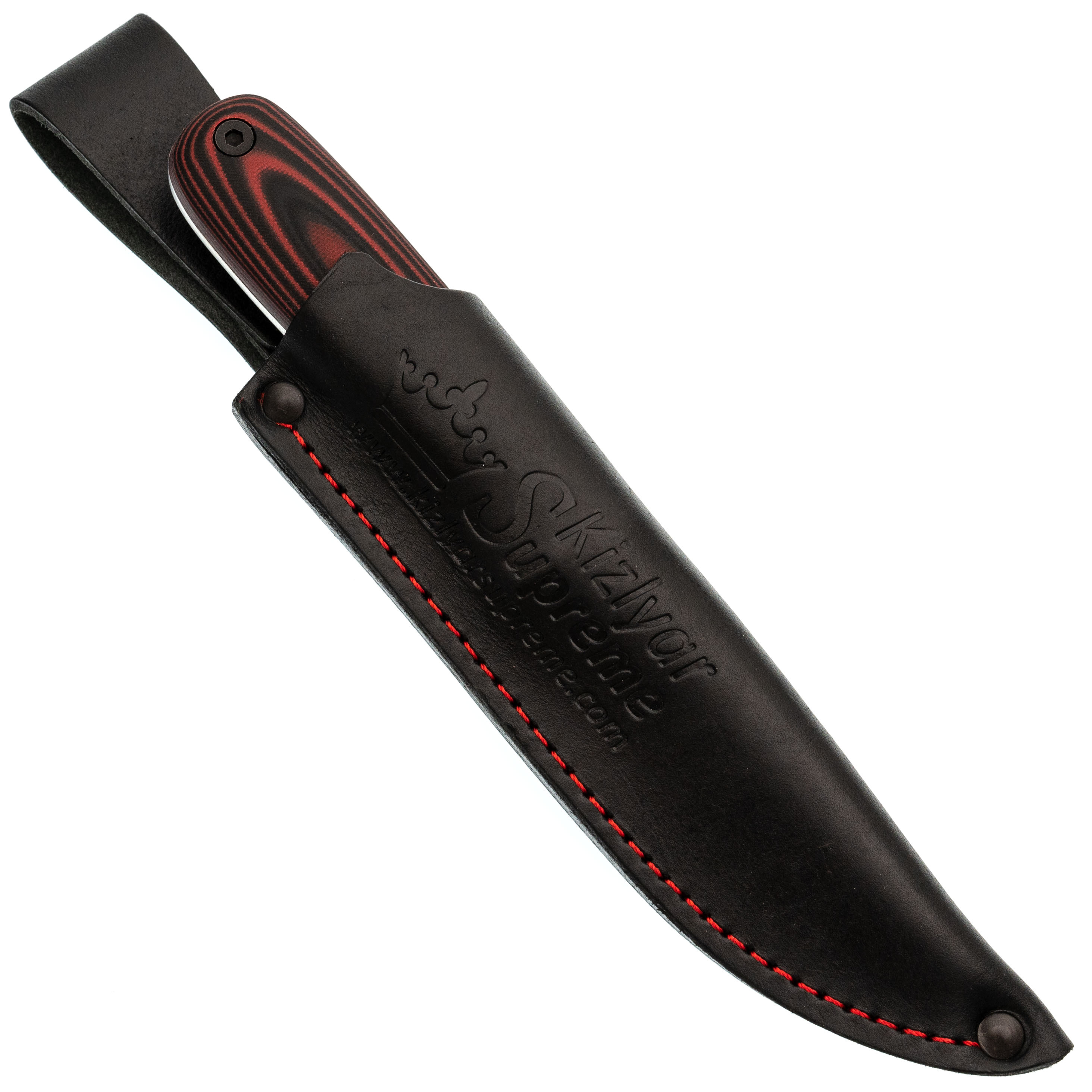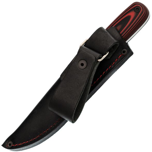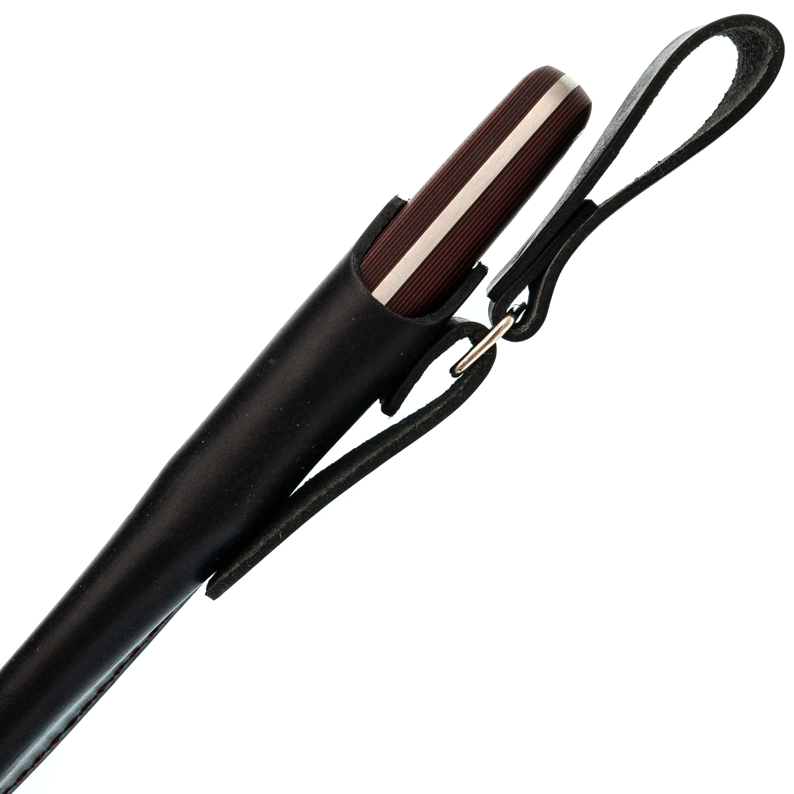 Погружные ножны из натуральной кожи закрывают клинок глубоко и удерживают нож без лишних люфтов. Свободный подвес помогает Colada двигаться на поясе, не мешая при ходьбе, приседаниях или работе у костра. Такой подвес особенно комфортен в туризме: нож всегда под рукой, но не цепляется и не ограничивает движения.