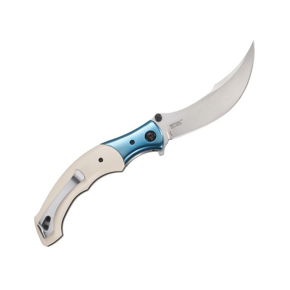 Нож CRKT Ritual разработал дизайнер Алан Фолтс, который смог реализовать идею старинного персидского клинка в современной интерпретации. Несмотря на то, что изделие имеет ярко выраженный древний колорит, оно изготовлено из самых современных материалов. Для клинка использована антикоррозийная сталь 12с27, созданная компанией Sandvik. Материал сочетает в себе высокую прочность и хорошую износостойкость режущей кромки. Открытие осуществляется при помощи шпенька под обе руки, для фиксации используется механизм Liner-lock. Полуавтоматический нож с изогнутым лезвием оснащен рукоятью из микарты двух цветов. Этот полимер не впитывает воду и запахи и хорошо переносит перепады температур. На рукояти имеется клипса для ношения на поясе или кармане.