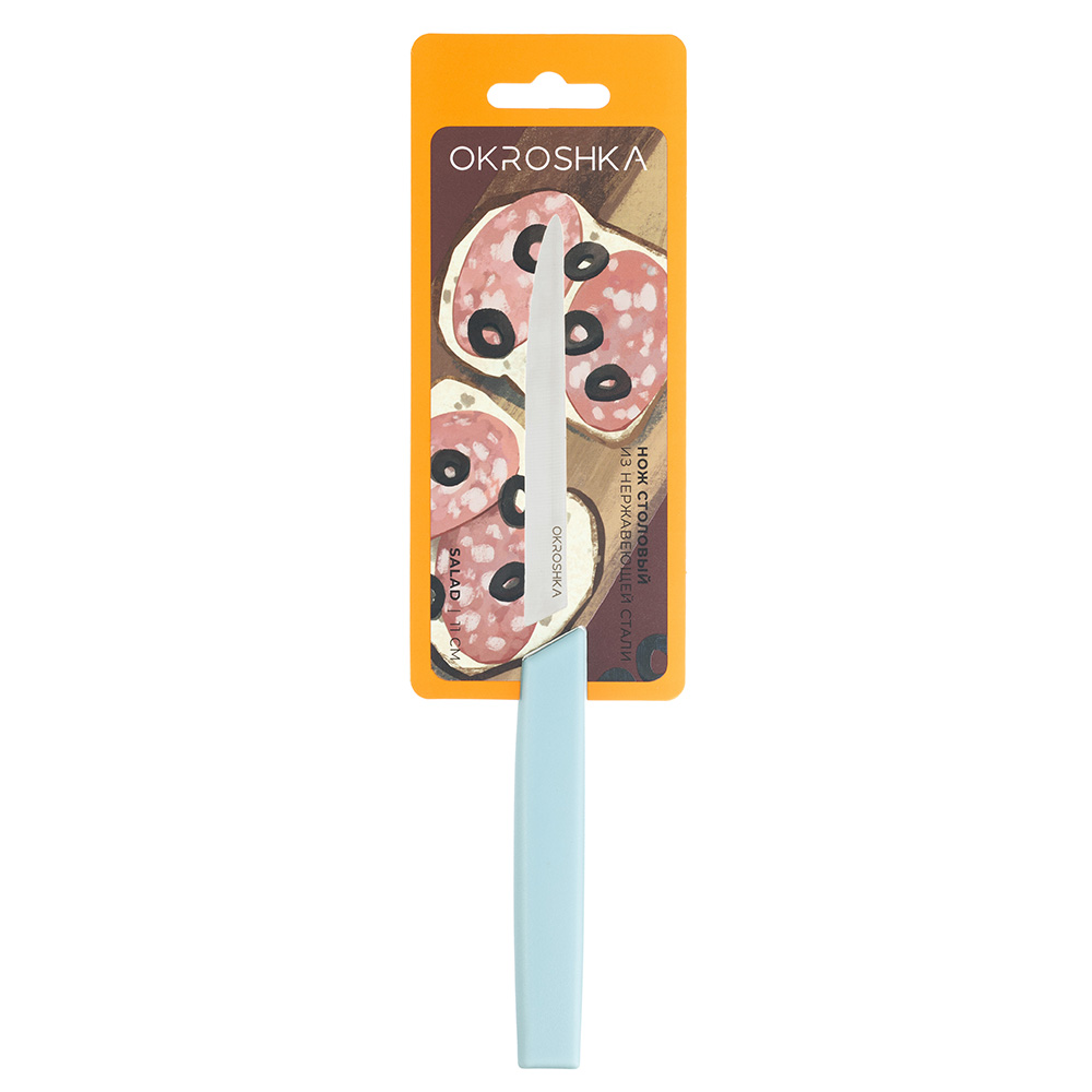 Нож кухонный cтоловый Okroshka Salad 11 см, сталь 5cr15mov, рукоять пластик, голубой