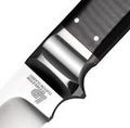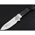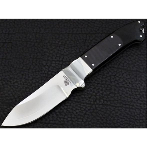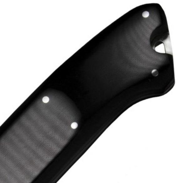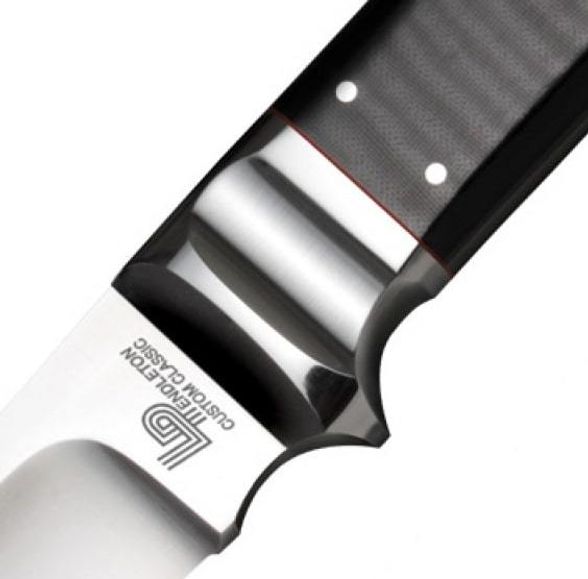 Рукоять выполнена из полированной черной льняной микарты с подкладкой из нержавеющей стали (Long Polished Black Linen Micarta with Stainless Bolster).