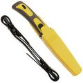 Рукоять ножа изготовлена из прочного пластика, что делает ее легкой, но в то же время невероятно прочной. Извлечение ножа из ножен осуществляется с помощью специальной кнопки, которая надежно фиксирует лезвие на месте, обеспечивая безопасность и удобство использования. Пластиковые ножны также отличаются прочностью, легкостью и неприхотливостью в обслуживании. Для крепления ножен к снаряжению используется специальная стропа, которая идет в комплекте, что позволяет легко и надежно прикрепить нож к вашему снаряжению.