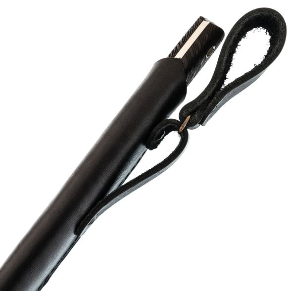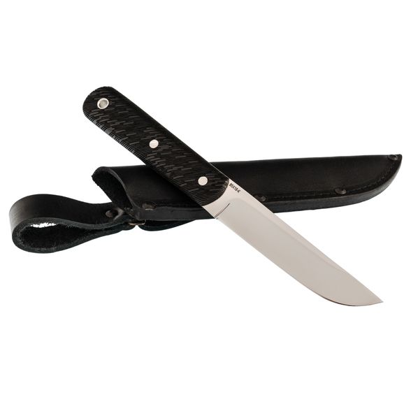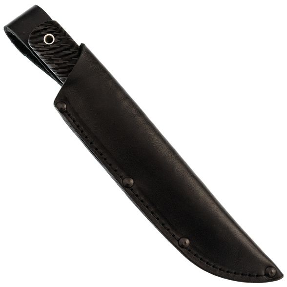 Нож комплектуется погружными ножнами из натуральной кожи, которые дополняют элегантный вид ножа. Ножны оснащены как жестким, так и свободным подвесом, позволяя удобно носить нож при различных обстоятельствах.