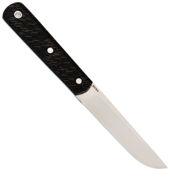 Клинок ножа Дипломат изготовлен из стали 95х18, которая обеспечивает идеальный баланс между высокой ударной вязкостью, коррозионной стойкостью и легкостью заточки. Такая сталь делает обслуживание ножа в походных условиях простым и быстрым. Универсальная форма клинка и высокие спуски позволяют эффективно резать и справляться с более тяжелыми нагрузками.