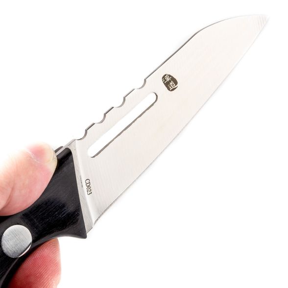 НОЖ КУХОННЫЙ HAN DAO LUO HX OUTDOORS, CD023 это легкий, компактный и надежный вариант на все случаи жизни. Главное назначение этого ножа — чистка овощей и выполнение вспомогательных работ на кухне. Однако, производители наделили его функционалом, который можно использовать для работы в полевых условиях. Например, для строгания палочек или сбора грибов. Здесь используется классическая ножевая нержавейка, которая не боится влаги и не подвержена ржавлению. Рукоятка из ударопрочного пластика выдерживает сильные ударные нагрузки.