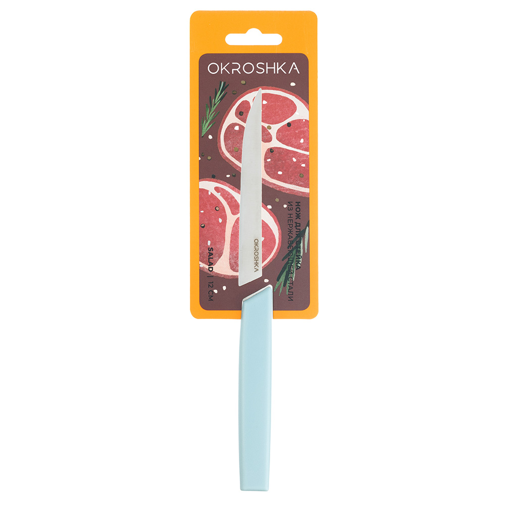 Нож кухонный для стейка Okroshka Salad 12 см, сталь 5cr15mov, рукоять пластик, голубой