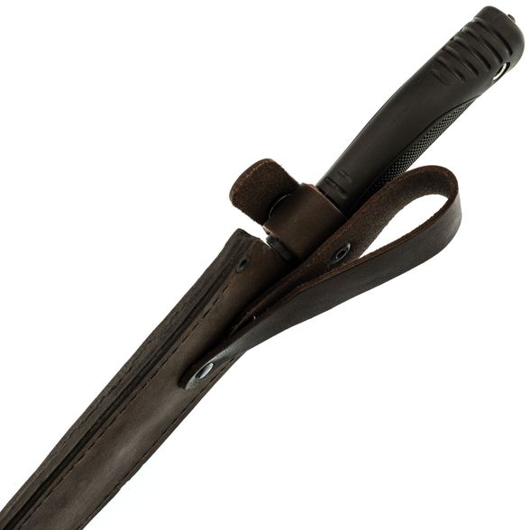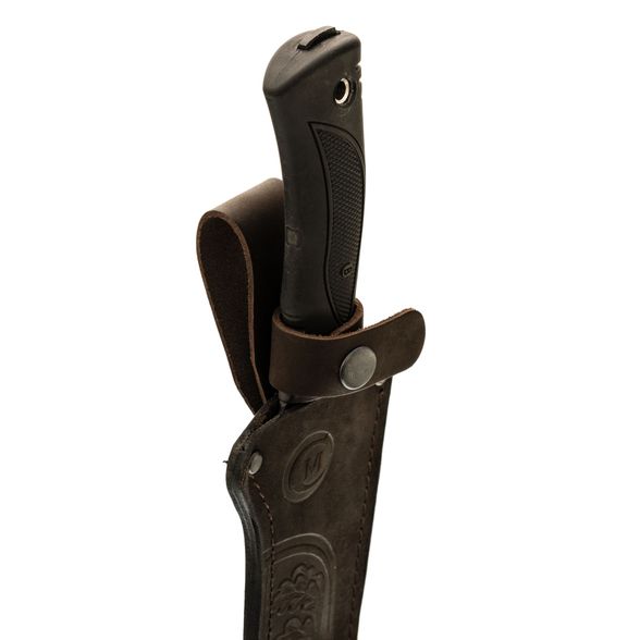 Нож комплектуется прочными ножнами, обеспечивающими безопасное ношение и лёгкий доступ к инструменту. Конструкция ножен надёжно фиксирует нож, предотвращая случайное выпадение, а универсальное крепление позволяет удобно разместить их на снаряжении или поясе.