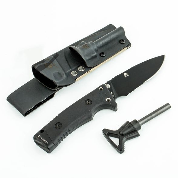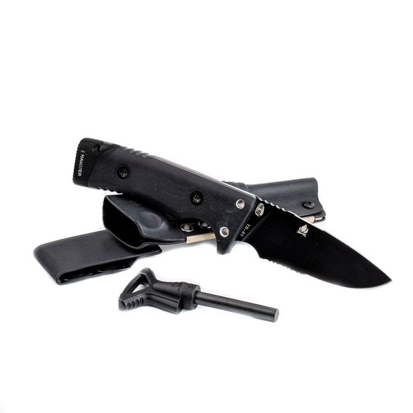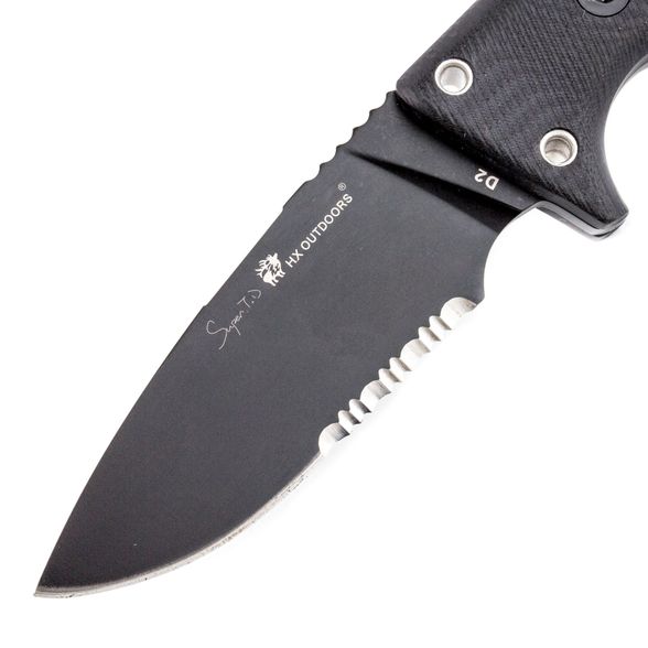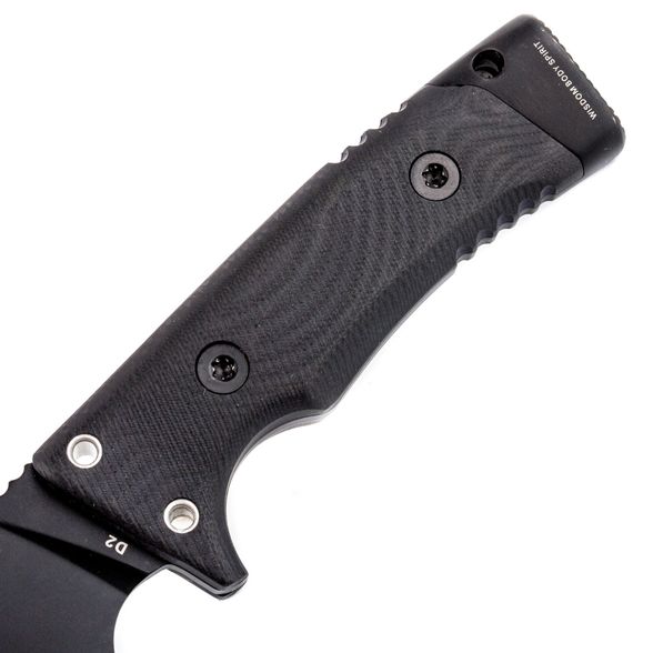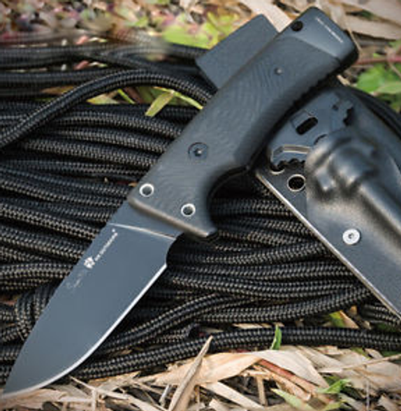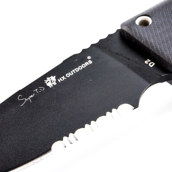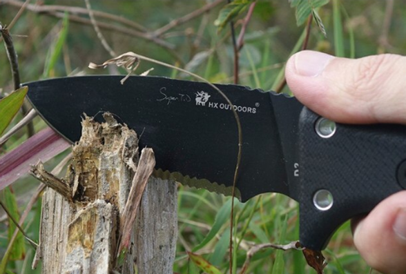 Нож для выживания Коготь HX Outdoors обладает высокой производительностью. Стойкий к коррозионным процессам клинок изготовлен из высокоуглеродистой стали марки D2, дополнительно покрыт титановым напылением. Рукоять выполнена из приятного на ощупь и стойкого к механическим повреждениям современного материла - стеклотекстолита G10. Данный материал не деформируется под воздействием высоких температур, не впитывает запахи и влагу.