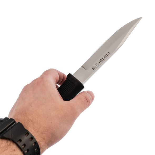 Нож Спецназ изготовлен из прочной стали, которая отличается устойчивостью к коррозии. Этот материал обеспечивает долговечность и высокие эксплуатационные характеристики, за счет чего нож подходит для использования в различных условиях: от городских до экстремальных.