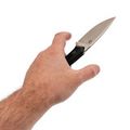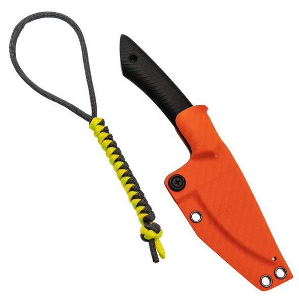 Продуманная форма позволяет уверенно держать инструмент независимо от размера ладони. Подпальцевый упор надёжно фиксирует хват, а отверстие под темляк и сам паракордовый шнурок добавляют удобства в использовании.
