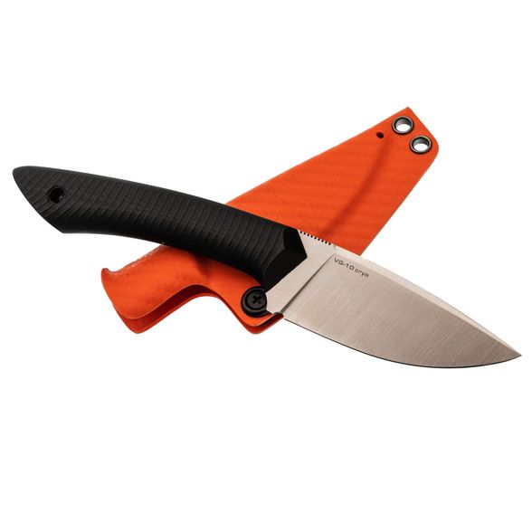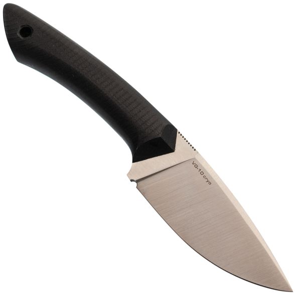 Широкий клинок с прямыми спусками уверенно режет, чисто строгает и легко входит в материал. Фальшлезвие придаёт ему отличные прокалывающие свойства, а универсальная форма делает его удобным в любой работе.