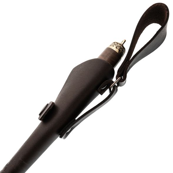 Ножны, изготовленные из натуральной кожи, обеспечивают безопасное ношение и хранение ножа. Они оснащены как жестким подвесом для надёжной фиксации, так и свободным подвесом, позволяющим быстро извлечь нож при необходимости. Такое сочетание обеспечивает удобство и безопасность во время путешествий.