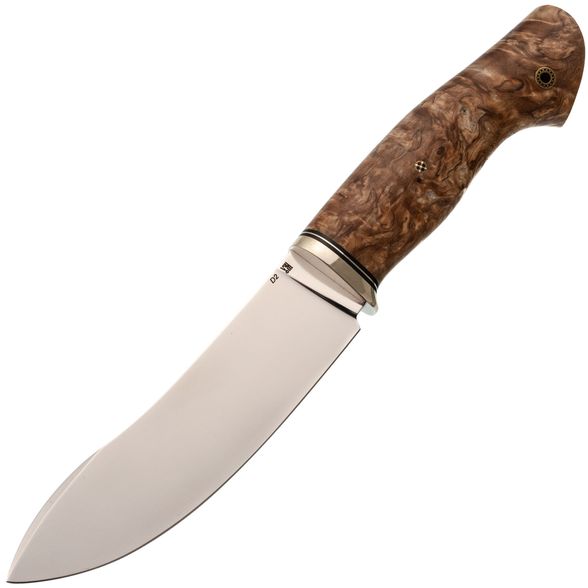 Сталь D2. Износостойкая, долго держит рабочую кромку, любит базовый уход. Хорошо переносит длительную работу по волокнистым материалам.