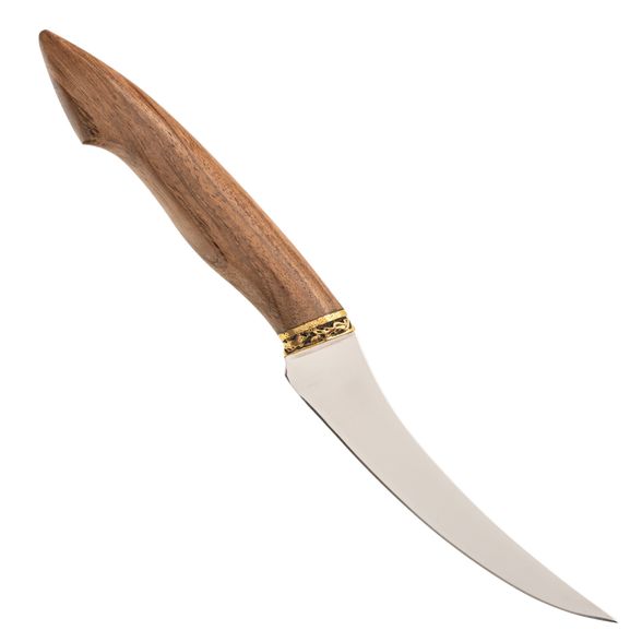 Нож модели Фин-1 сталь 65х13, филейный, рукоять орех, с передним литьем латунь. Модель является ножом разделочным, не относящимся к холодному оружию.