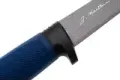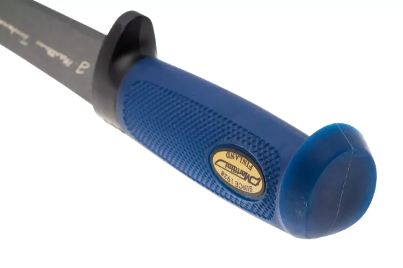Фирменная рукоять Marttiini спроектирована с учётом влажных и скользких условий. Лёгкий изгиб повторяет форму ладони, а расширение к тыльной части надёжно страхует от соскальзывания вперёд. Текстурированная резина приятно "цепляется" за пальцы, не натирая кожу. Даже после долгой разделки рука меньше устает, потому что нож не приходится лишний раз перехватывать.