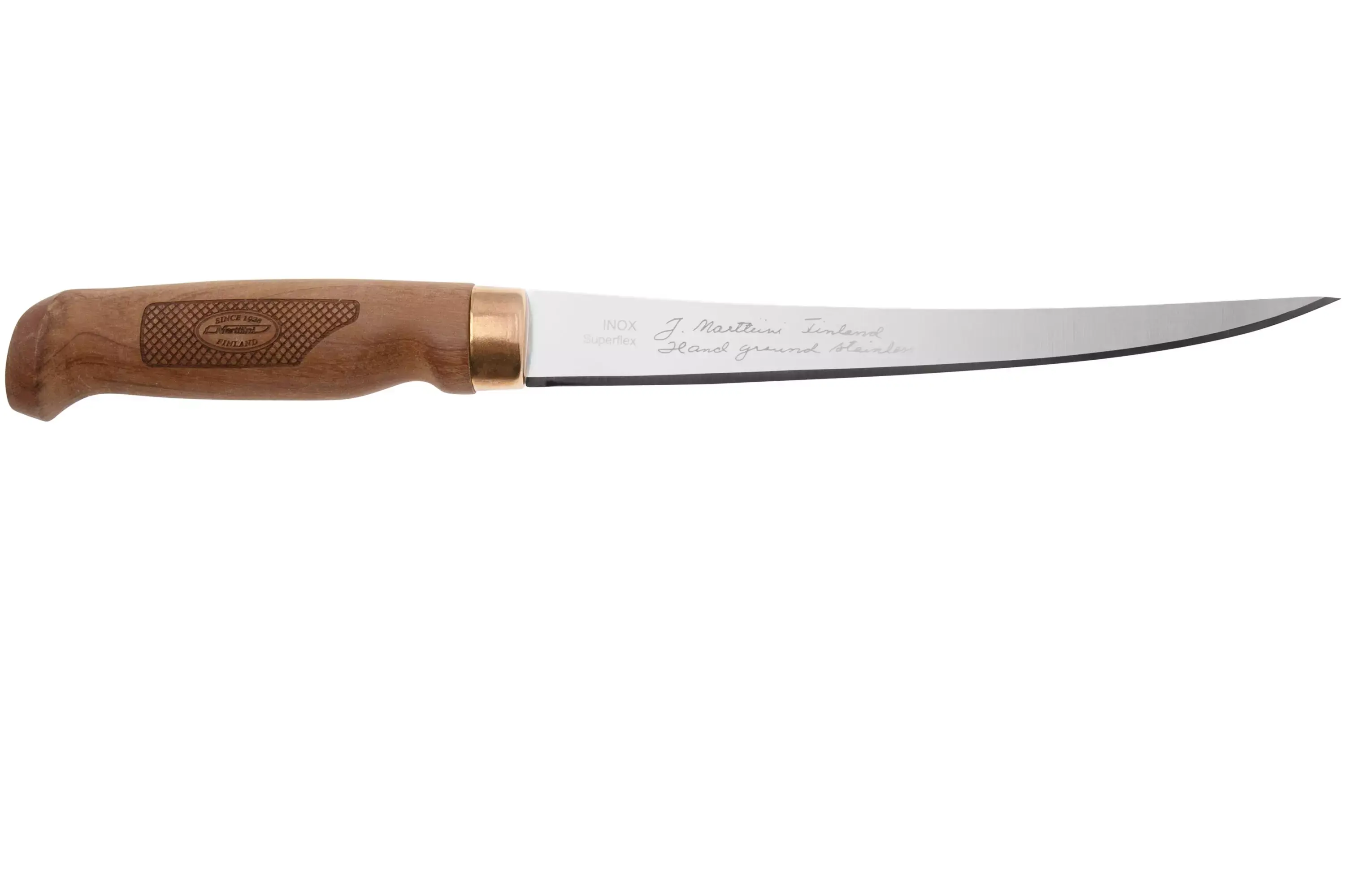 Marttiini SUPERFLEX Filleting 19 - рабочий финский классик для тех, кто любит аккуратную разделку без лишних потерь. Узкий и очень гибкий клинок позволяет вести рез вдоль кожи или кости практически "в ноль", сохраняя максимум филе. Оптимален для рыбы весом около 1 кг, мягкого мяса и деликатной работы на кухне - от разделки плоской рыбы до нарезки томатов и других нежных овощей.