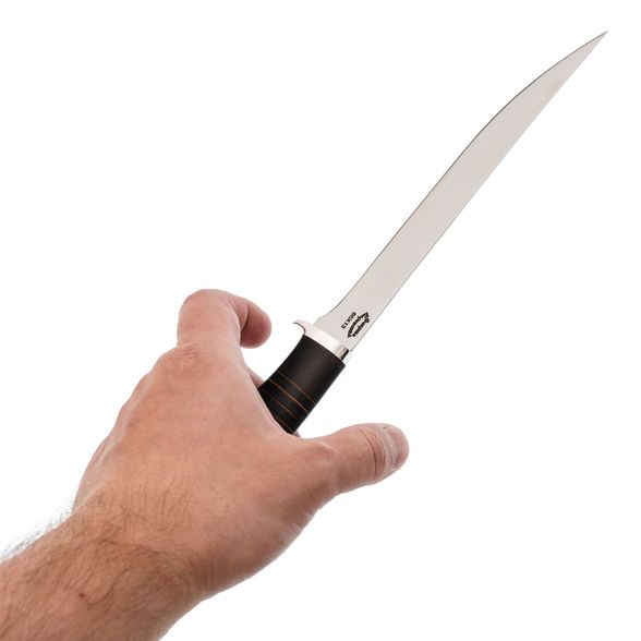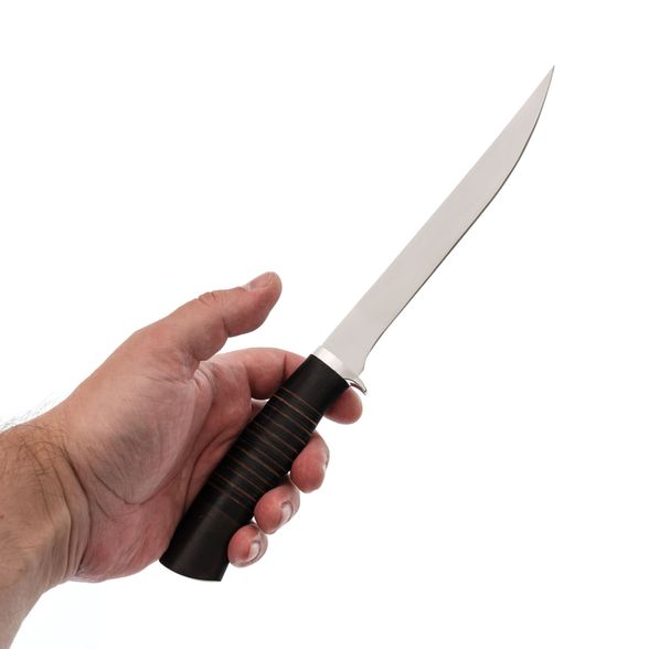 Нож Нерпа сталь 65х13, филейный, рукоять кожа.
