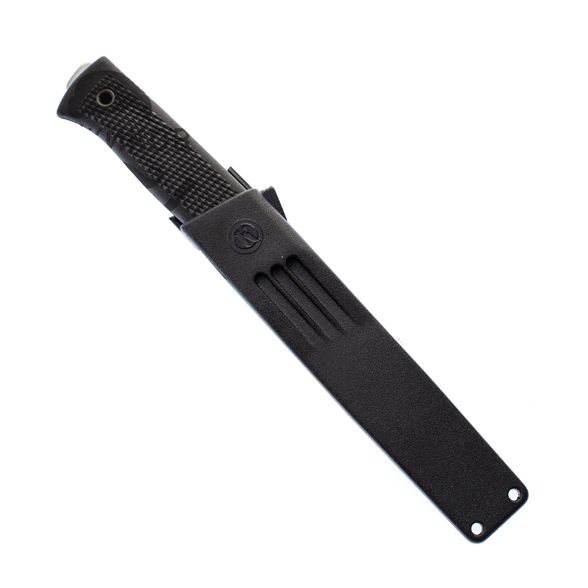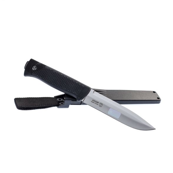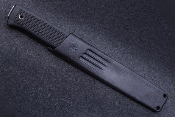 Рукоять ножа изготовлена из эластрона - материала, обеспечивающего надежное и комфортное удержание даже в мокрой или жирной руке. Но настоящим уникальным элементом ножа "Филин" являются его ножны. Они изготовлены из специального пластика, который делает их невероятно прочными и легкими. Пластик, используемый в изготовлении ножен, обладает высокой устойчивостью к воздействию влаги, что делает нож пригодным для использования даже в влажных условиях.