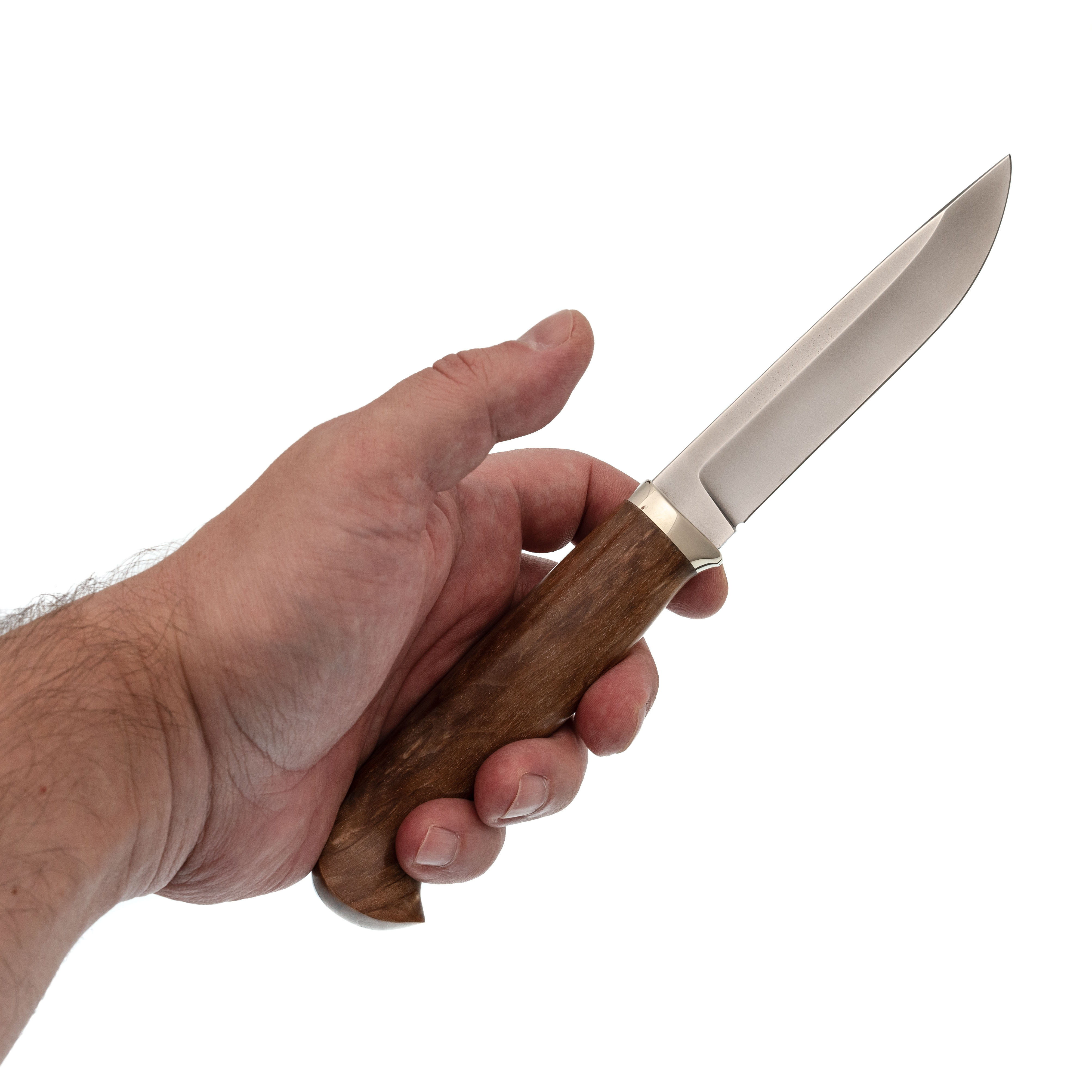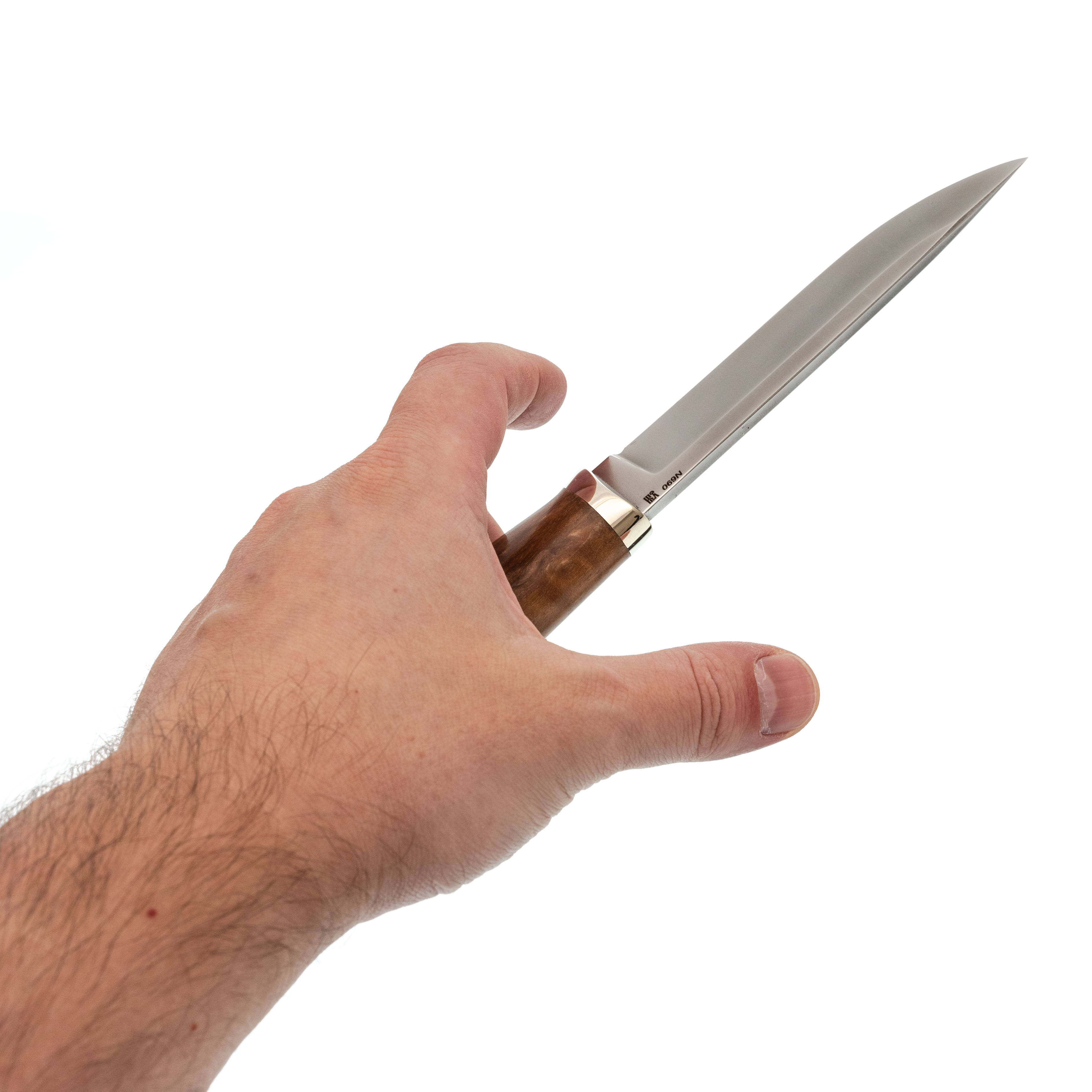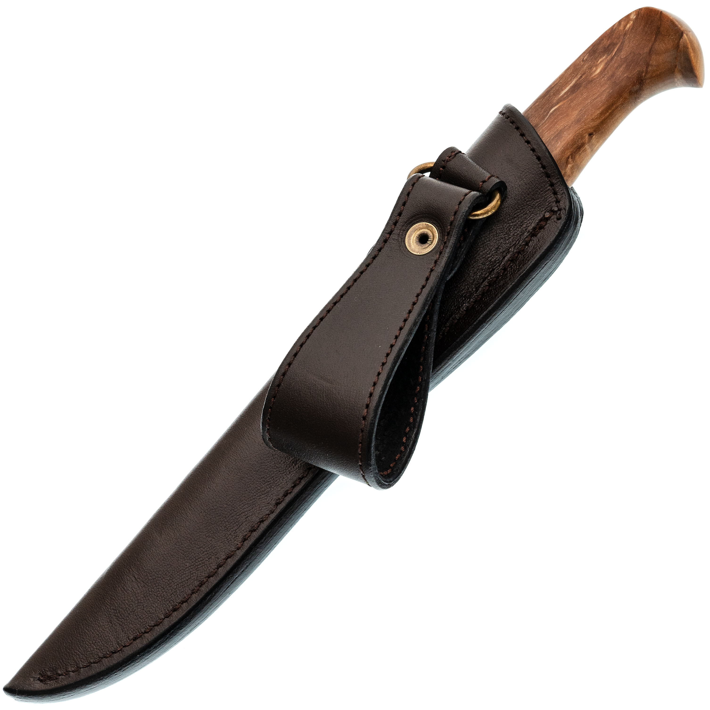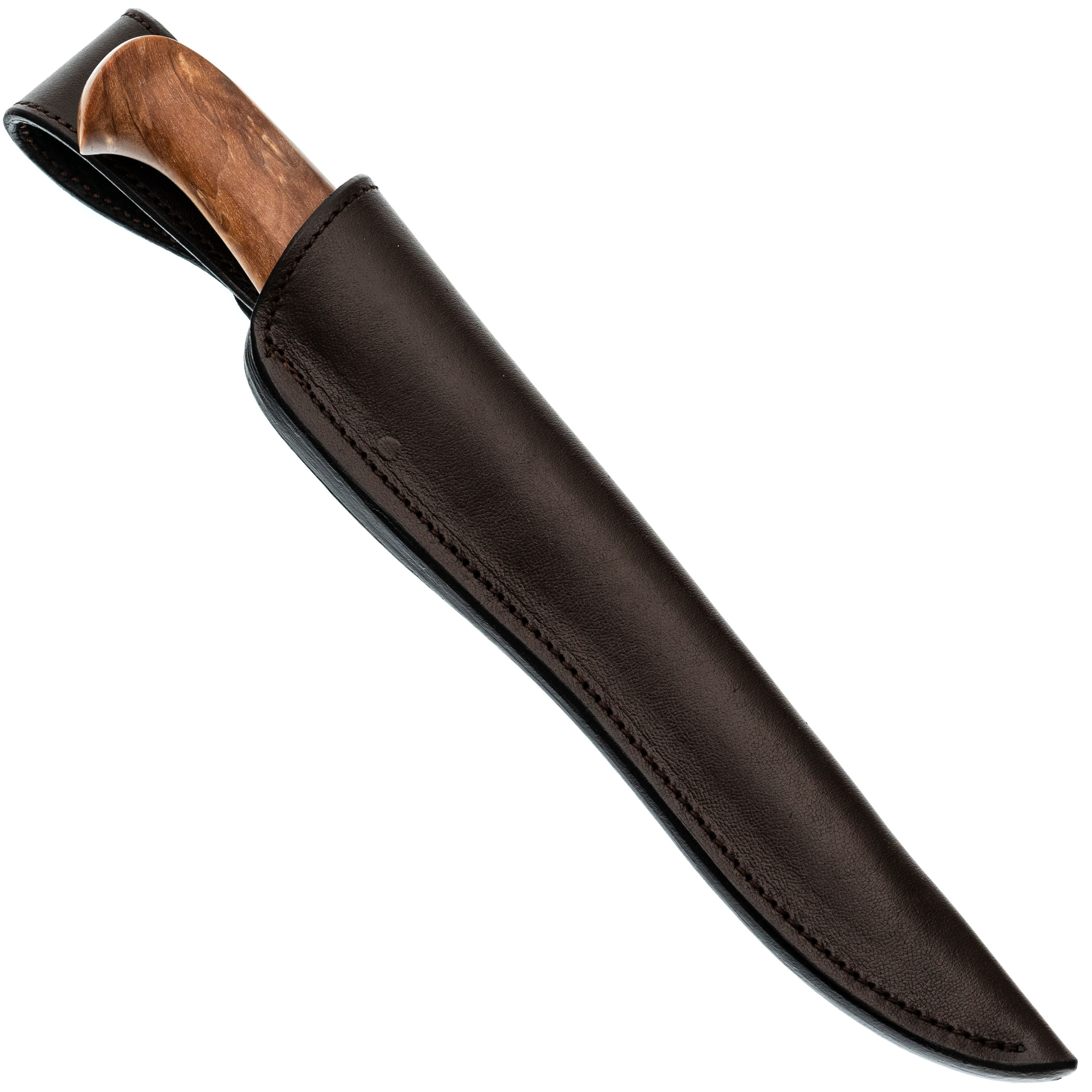 Финка 125 - это надёжный спутник для тех, кто любит походы, вылазки на природу и просто жизнь вне города. Основана на финских традициях пуукко, но адаптирована под современные задачи. Компактная, удобная и лёгкая - она не занимает много места, но всегда готова помочь, когда нужно что-то подрезать, приготовить еду или справиться с мелкой работой у костра.