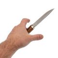 Форма Drop-Point делает лезвие универсальным: одинаково удобно резать продукты, строгать щепу или подготавливать место под костёр. Вогнутые спуски от середины дают лёгкий, аккуратный рез, сохраняя при этом достаточную прочность для серьёзной работы.