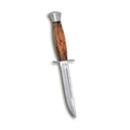 Универсальный, очень легкий нож средней величины, с развитой стальной гардой классического типа. Нож прекрасно сбалансирован. Неширокий клинок толщиной 2,4 мм с приспущенным обушком имеет вогнутые линзовидные спуски на половину ширины клинка, образующие прекрасно режущее лезвие. На голомени с обеих сторон клинка выбраны узкие долы, добавляющие жесткости клинку. Небольшая эргономичная рукоять на удивление хорошо ложится даже в большую ладонь. А расширенная головка рукояти хорошо способствует этому. Монтаж клинка сквозной, неразборный. Прототипом ножа является «Вачинская финка» времен ВОВ, выпускавшаяся для нужд фронта. Заслуженно пользуется популярностью у широкого круга покупателей.