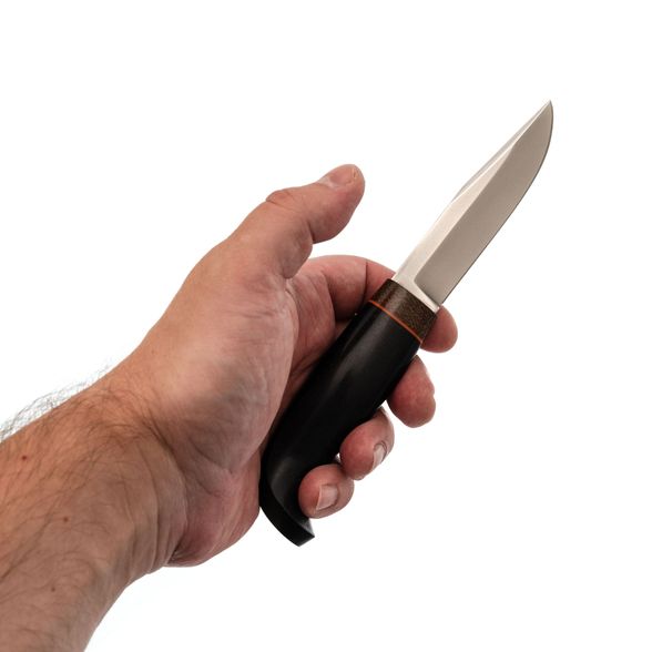 Сталь N690. Крепкая нержавейка с хорошим удержанием остроты; не капризна к полевой правке.