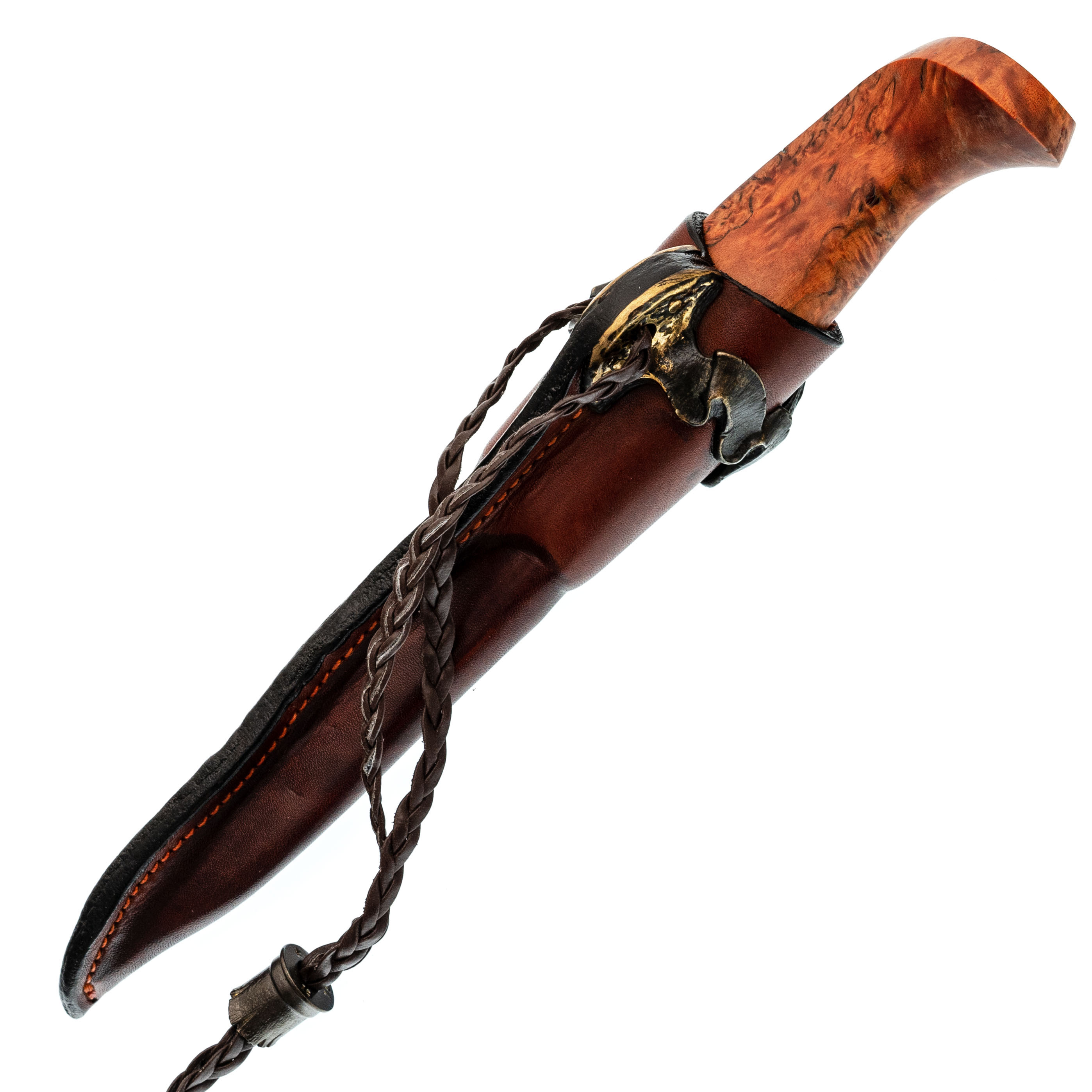 Рукоять: карельская берёза. Живая текстура, тёплое ощущение в ладони, хорошее сцепление даже без перчаток.