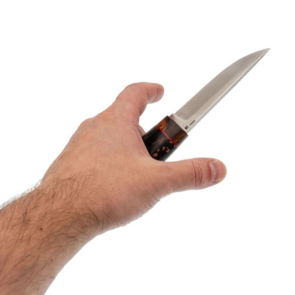 Форма Drop-Point придаёт универсальность, а высокие спуски помогают легко входить в материал и делают рез плавным и чистым. Лезвие уверенно работает как по дереву, так и по продуктам - без рывков и усилий.