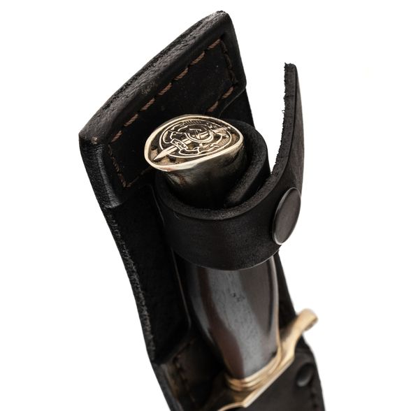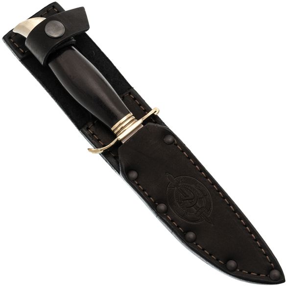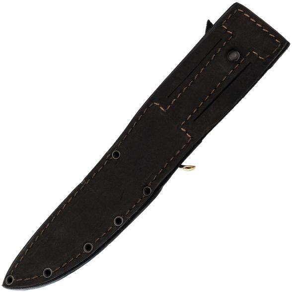 Ножны из толстой натуральной кожи гарантируют надежность и долговечность хранения ножа. Они оснащены жестким подвесом, обеспечивающим удобство и безопасность при ношении.