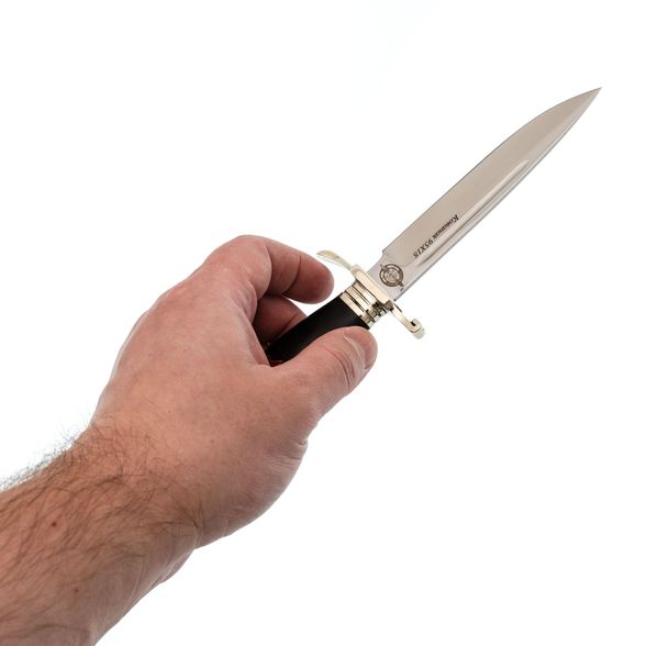 С ножом Финка НКВД Звезда вы получите надежный и элегантный инструмент, который станет вашим верным спутником в любых приключениях, обеспечивая универсальность и безопасность во время работы с ним.
