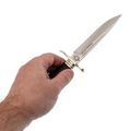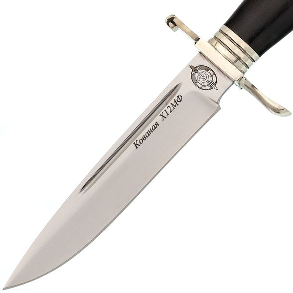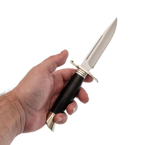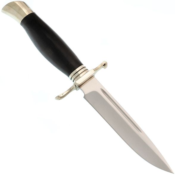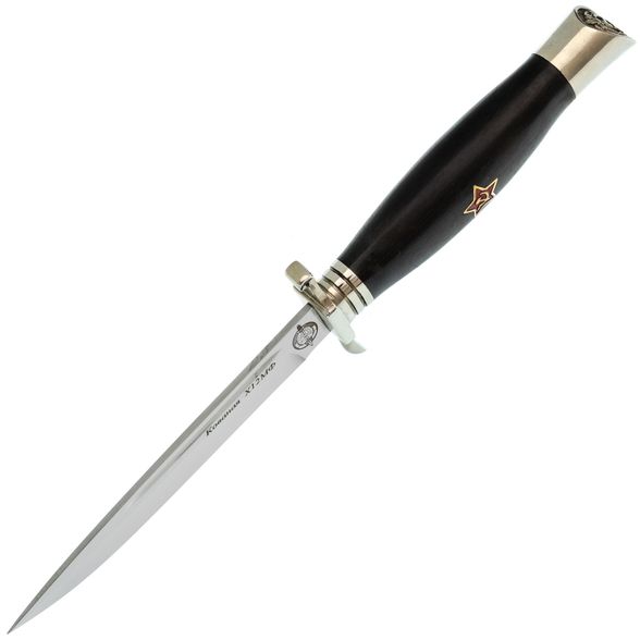 НОЖ ФИНКА НКВД ЗВЕЗДА, СТАЛЬ Х12МФ, ГРАБ это гармоничное сочетание классической геометрии, лаконичной стилистики начала 20-го века и качественных современных материалов. Геометрия финки в точности повторяет обводы исторического прототипа. Острый кончик используется для добора зверя, высокие спуски обеспечивают ровный и хорошо контролируемый рез, стальная гарда защищает пальцы от соскальзывания на клинок в процессе работы. Бочкообразная рукоять ножа изготовлена из натурального дерева, что позволяет удерживать нож голой рукой на морозе. Такая модель пригодится промысловику, охотнику или экстремальному туристу.
