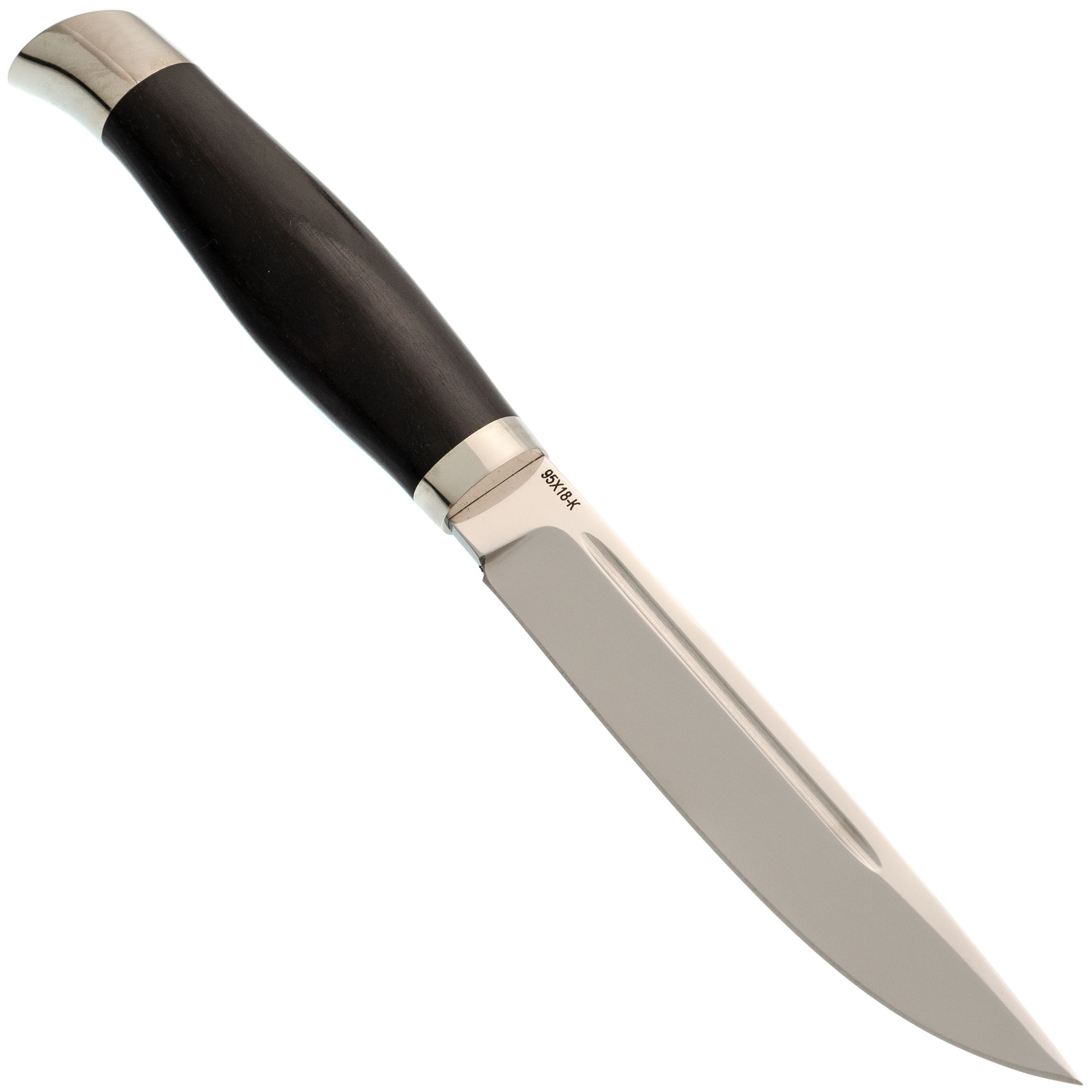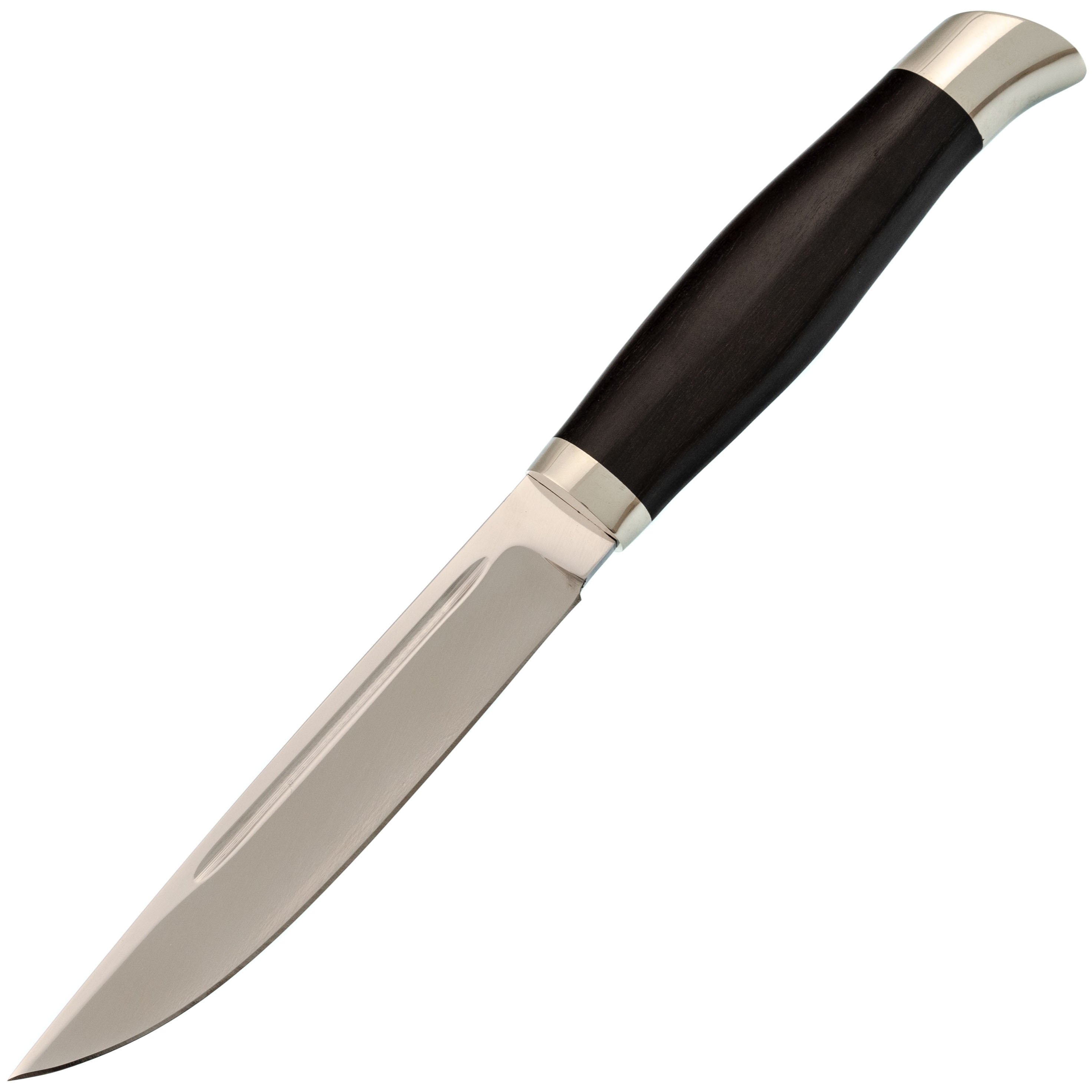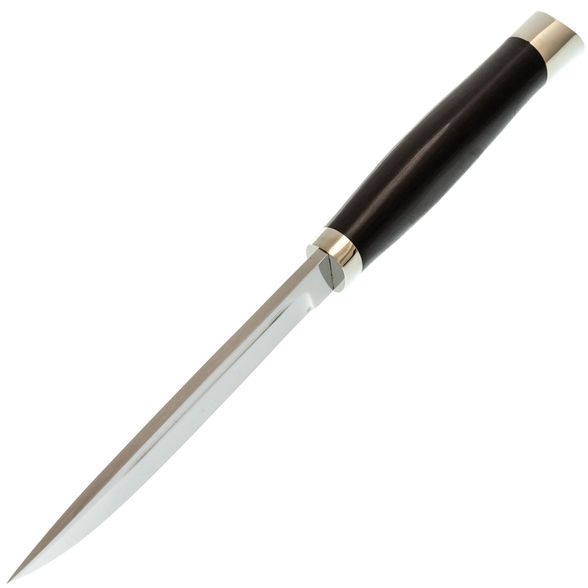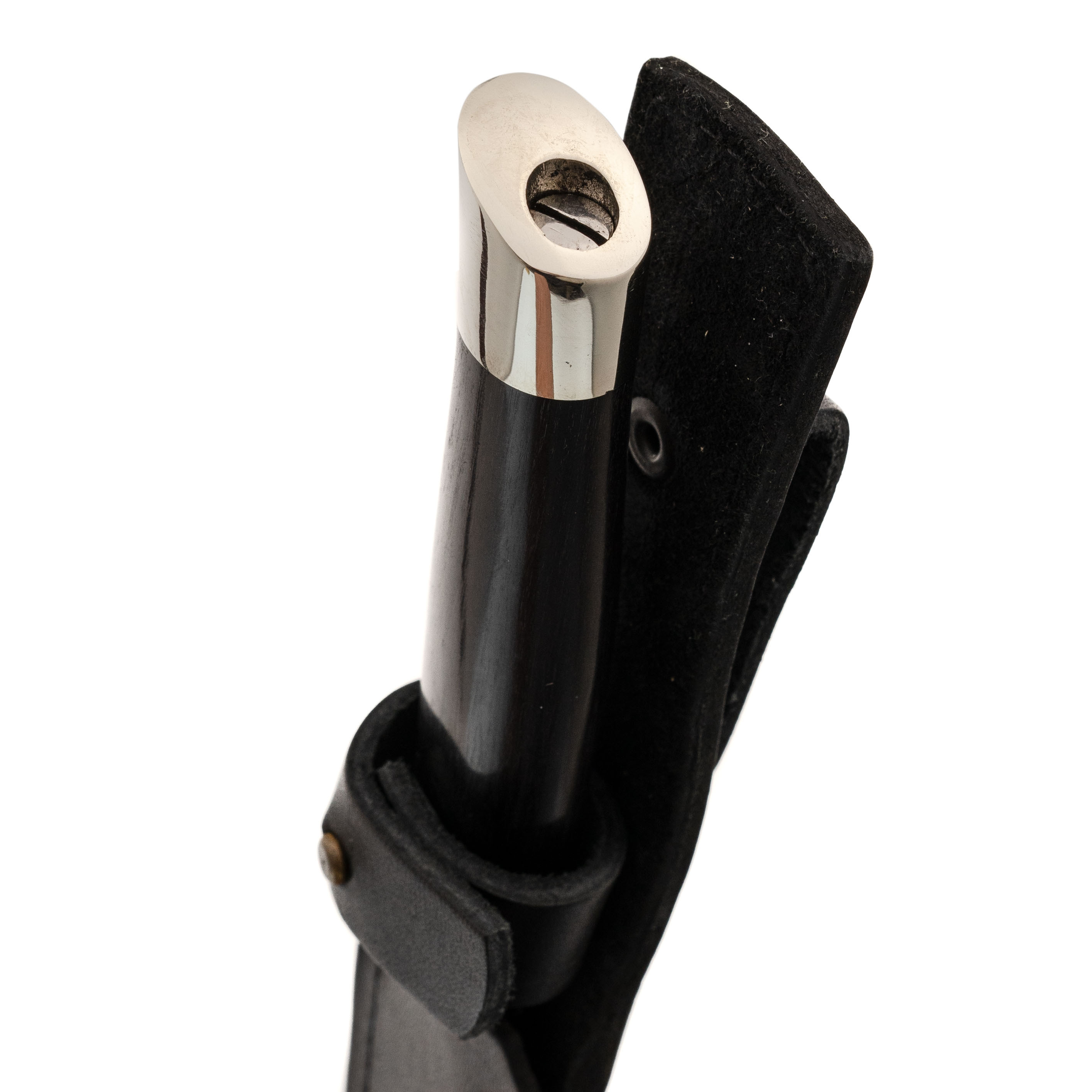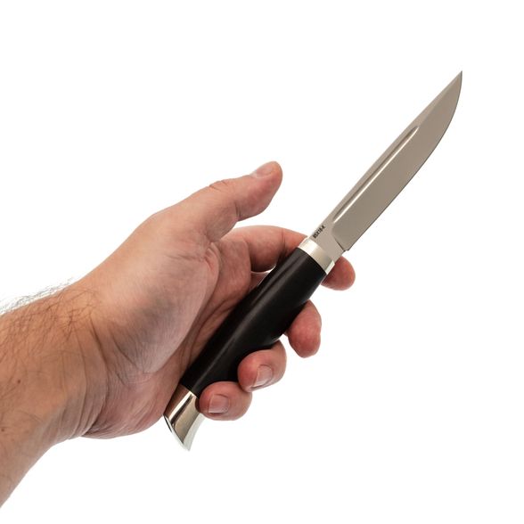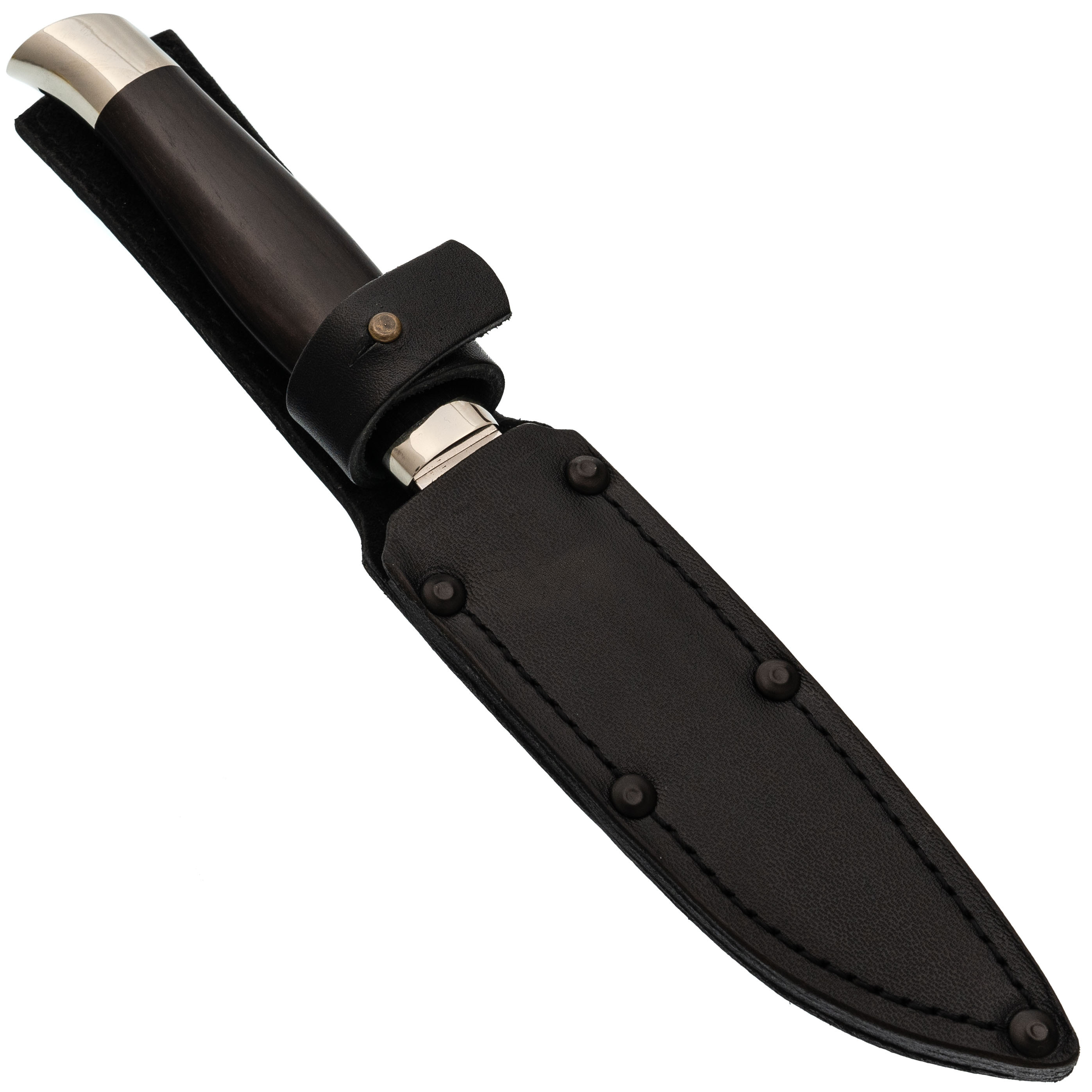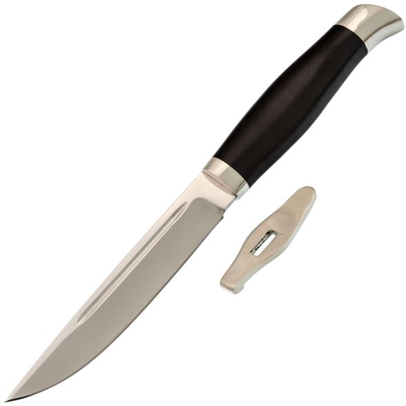 Нож Финка Титан разборная подойдет для туристических целей, а также для рыбалки, охоты и прочих видов активного времяпровождения. Данная модель одинаково хорошо справится с нарезкой продуктов, работой по дереву, свежеванием дичи или чисткой улова. Клинок, выполненный из нержавеющей стали 95х18, имеет прямую форму с небольшим скосом лезвия и долами, расположенными с двух сторон голомени. Как и все инструменты данного вида, финка разборная обух 4 мм оснащена деревянной рукоятью. В данной модели использован резной граб, который отличается особой прочностью и не растрескивается после длительного использования. Комплект дополнен плотными черными ножнами из натуральной кожи.