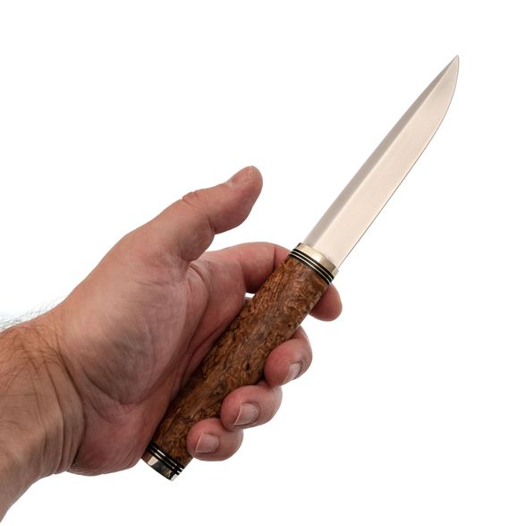 По сути, это полевой универсал в духе северных традиций: без лишних деталей, с акцентом на полезный труд. Выручит на однодневной прогулке, в походе выходного дня, на рыбалке или в лагере у воды - когда нужно подготовить растопку, подрезать стропы, нарезать продукты, подправить колышек или сделать аккуратную выемку в дереве. Спокойный характер модели позволяет брать её и в поездки, и на дачный сезон - там, где ценят надёжность, понятное поведение и корни, уходящие в проверенную временем финскую школу.