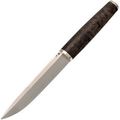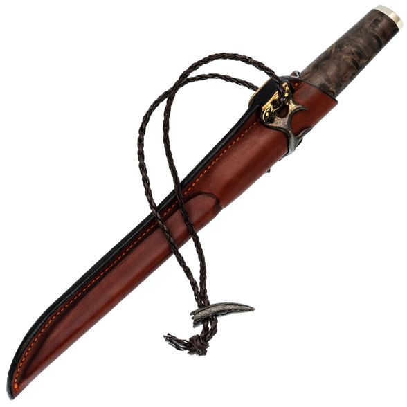 Ножны изготовлены из натуральной кожи высокого качества с формовкой по рукояти - нож входит в них с чёткой посадкой и удерживается без люфта. Прочность и долговечность материалов позволяют не беспокоиться о хранении ножа в полевых условиях.