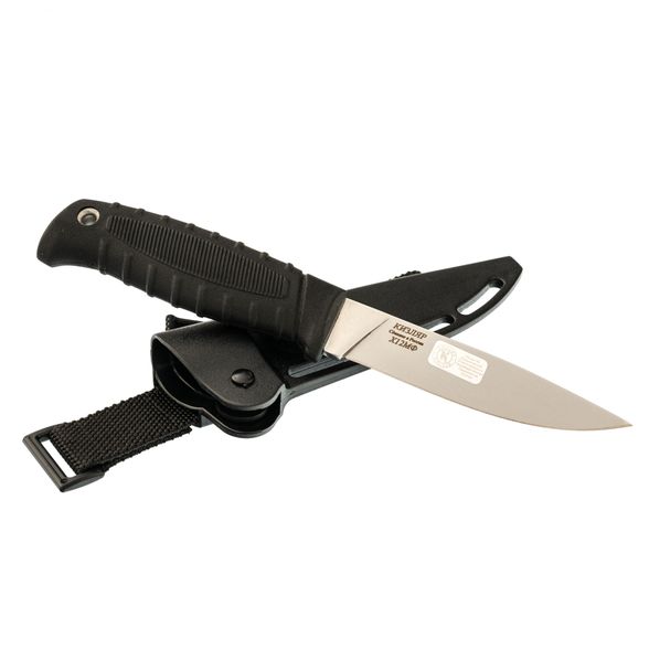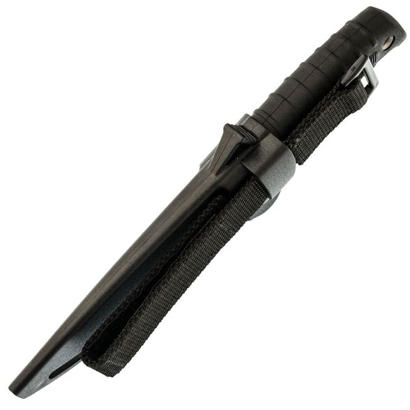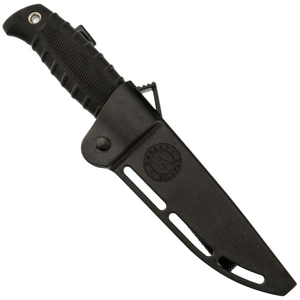 Комплект дополняют поясные ножны из пластика с свободным подвесом, что обеспечивает удобство ношения и быстрый доступ к ножу. Ножны оснащены упором для большого пальца, облегчая извлечение ножа, а также прорезями, позволяющими экспериментировать с различными вариантами крепления.