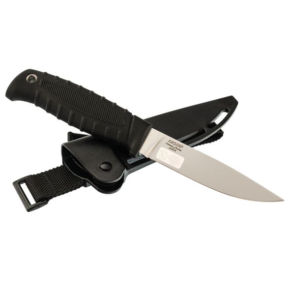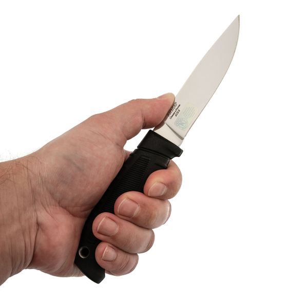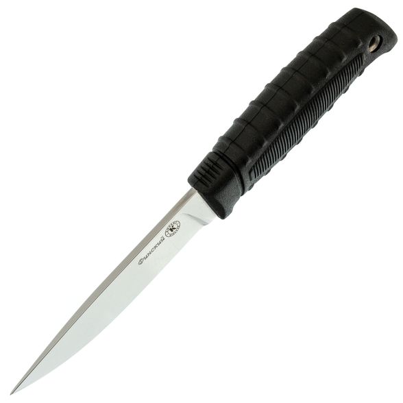 Нож Финский, сталь Aus-8, Кизляр - это многофункциональный инструмент, который поможет решить различные задачи в походе или на охоте. Внешне данный нож сильно напоминает скандинавские походные клинки, при этом он совершенно не уступает им по характеристикам. Лезвие изготовлено из японской нержавеющей стали, которая весьма быстро точится, но при этом выдерживает большие ударные нагрузки. Рукоять в данной модели выполнена из прочного эластрона, устойчивого к химическим и физическим воздействиям, и отлично себя зарекомендовавшего как при высоких, так и при низких температурах. Нож Финский для охоты от ПП Кизляр комплектуется прочными ножнами из натуральной кожи.