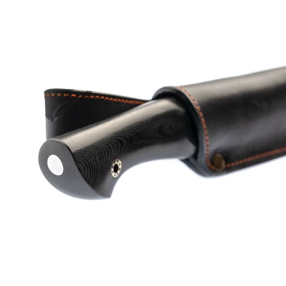 Рукоять выполнена из микарты - это прочный синтетический материал, который не боится воды, перепадов температур и других воздействий агрессивных сред. Небольшим приятным моментом является то, что при намокании она становится более цепкой. Форма у рукояти изогнутая, так что в руку она ложится прекрасно, а её объём позволяет долго работать без дискомфорта.