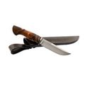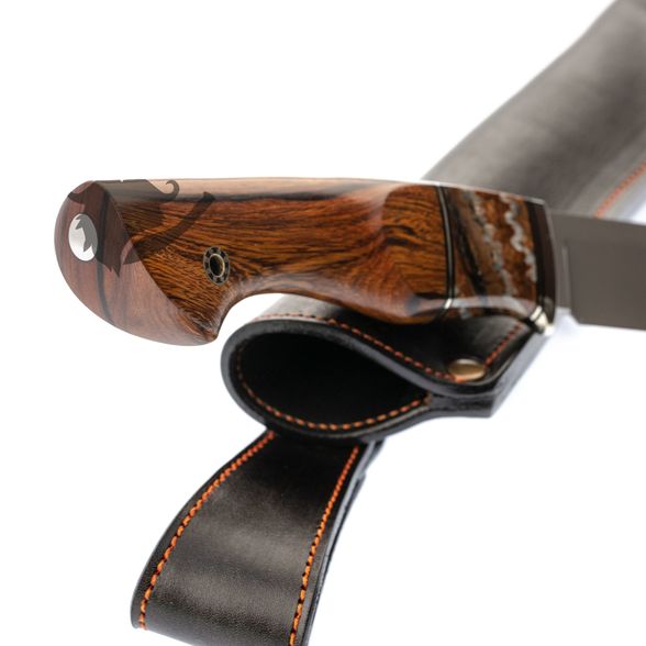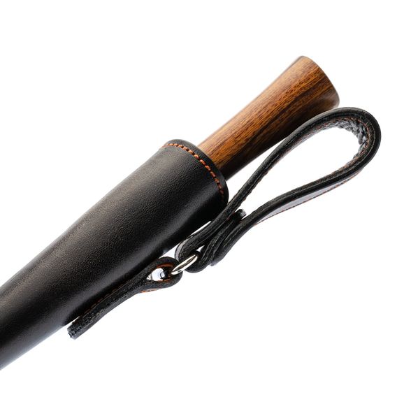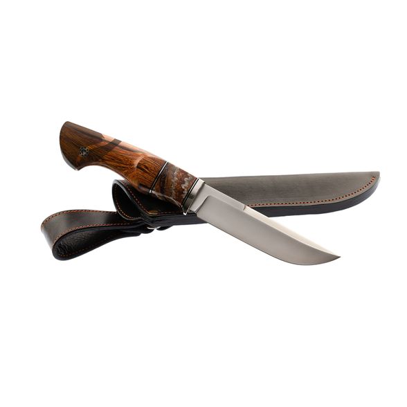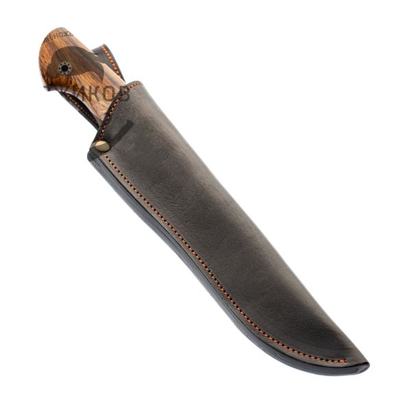 Нож комплектуется погружными ножнами из натуральной кожи. Подвес на ноже свободный, для удобства передвижения.